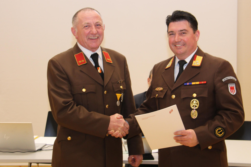 Harald Gunz erhielt für sein jahrzehntelanges Wirken im Feuerwehrwesen – darunter zahlreiche Funktionen, so auch als Kommandant – das Verdienstkreuz in Silber des Landesfeuerwehrverbandes.