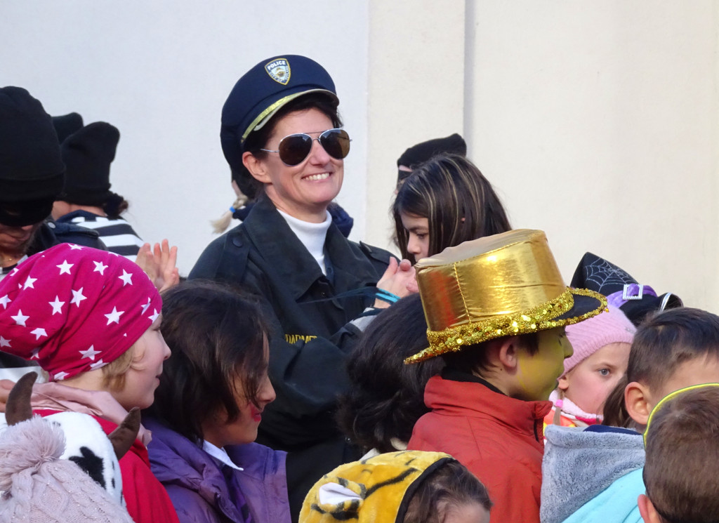 Die Direktorin in bester Faschingslaune.