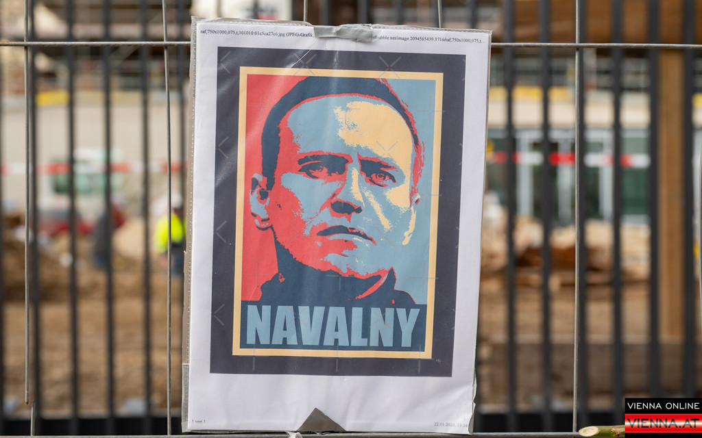 Nawalny Gedenkstätte an einem Bauzaun gegenüber der Botschaft Russlands