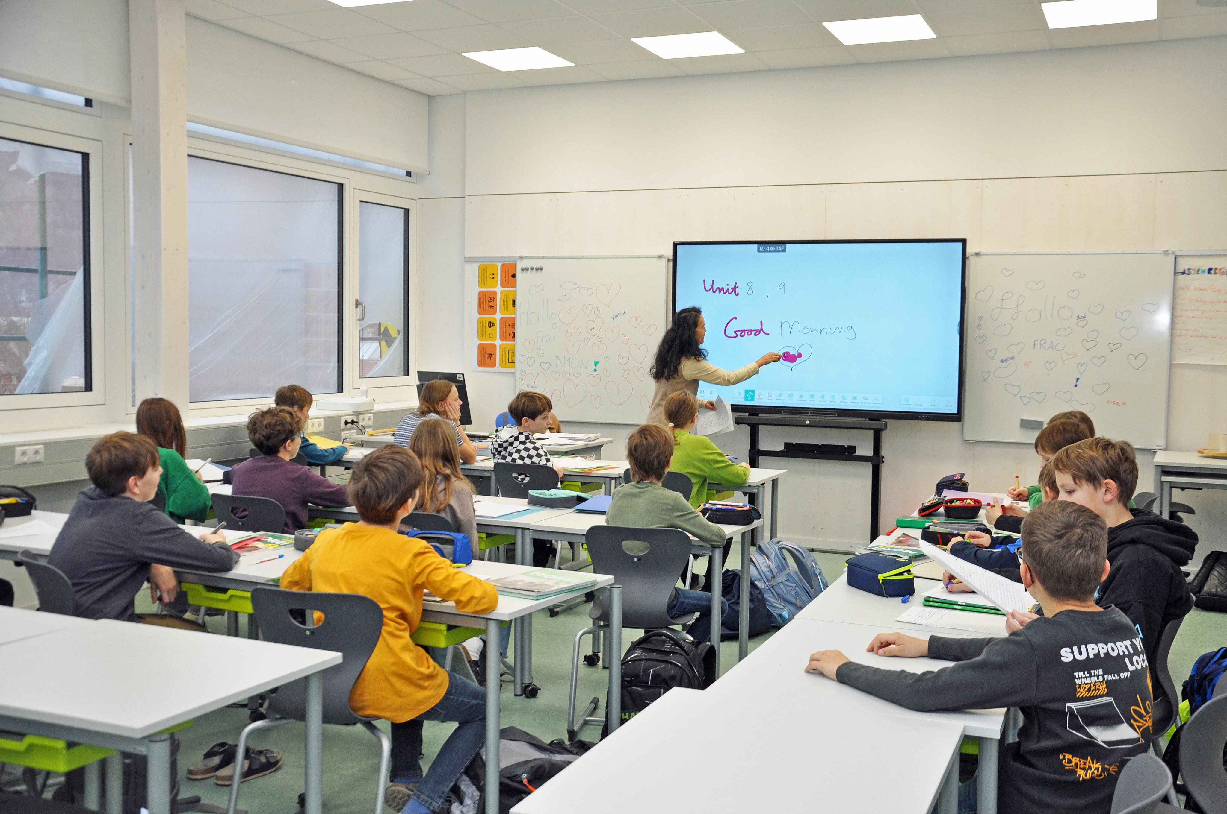 Die neuen Klassenräume sind alle mit digitalen Tafeln ausgestattet.