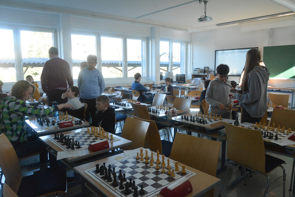 155 Kinder aus Österreich, der Schweiz und aus Litauen sind am Wochenende an die Mittelschule Rheindorf gekommen, um sich dort im Schachspielen zu messen.