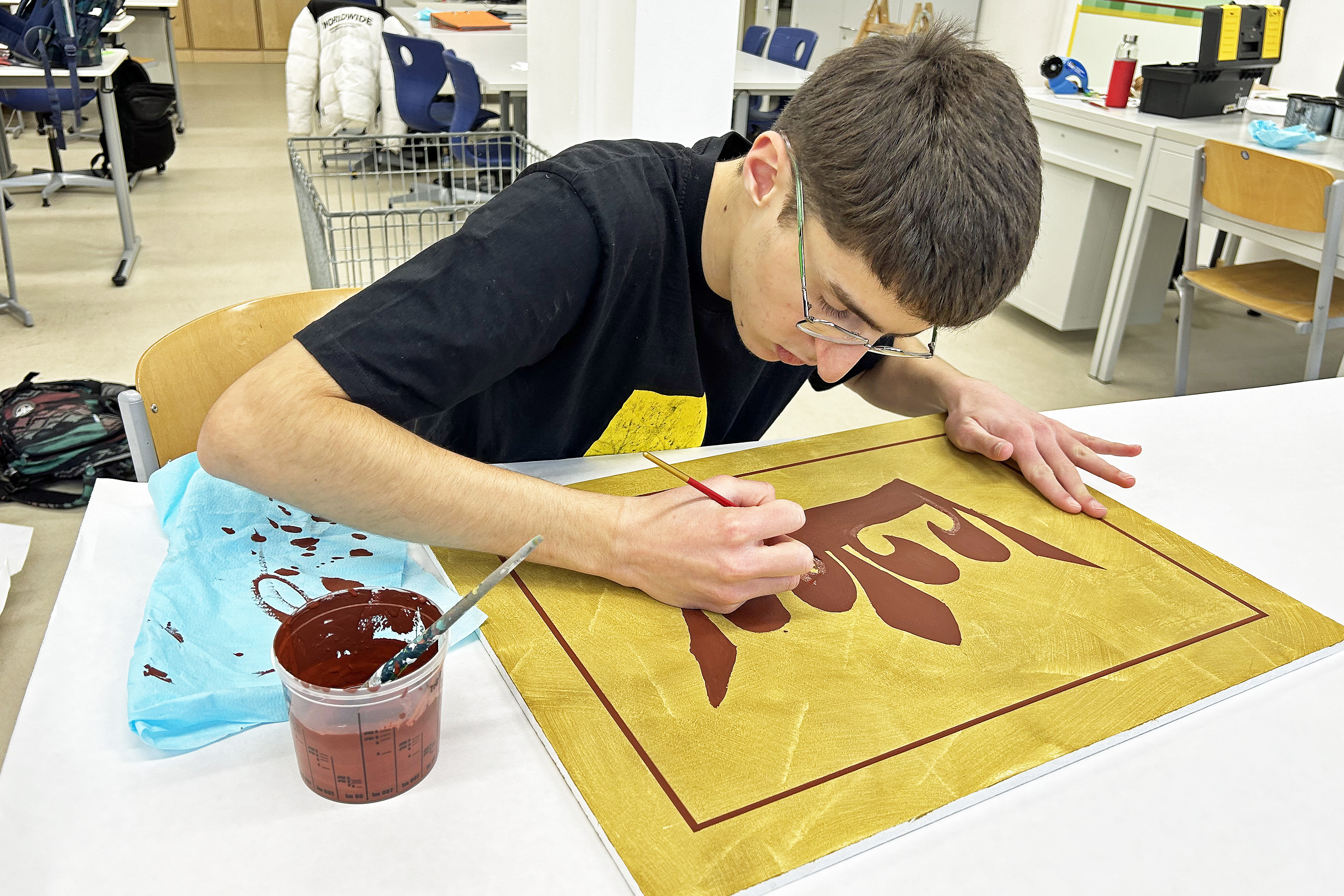 Egemen Togan (15) konnte im Werkstätten-Unterricht der Maler und Lackierer eine Krone zeichnen.