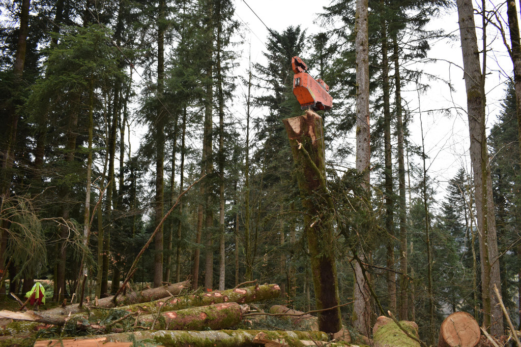 Die Laufkatze kann große Holzmengen transportieren.