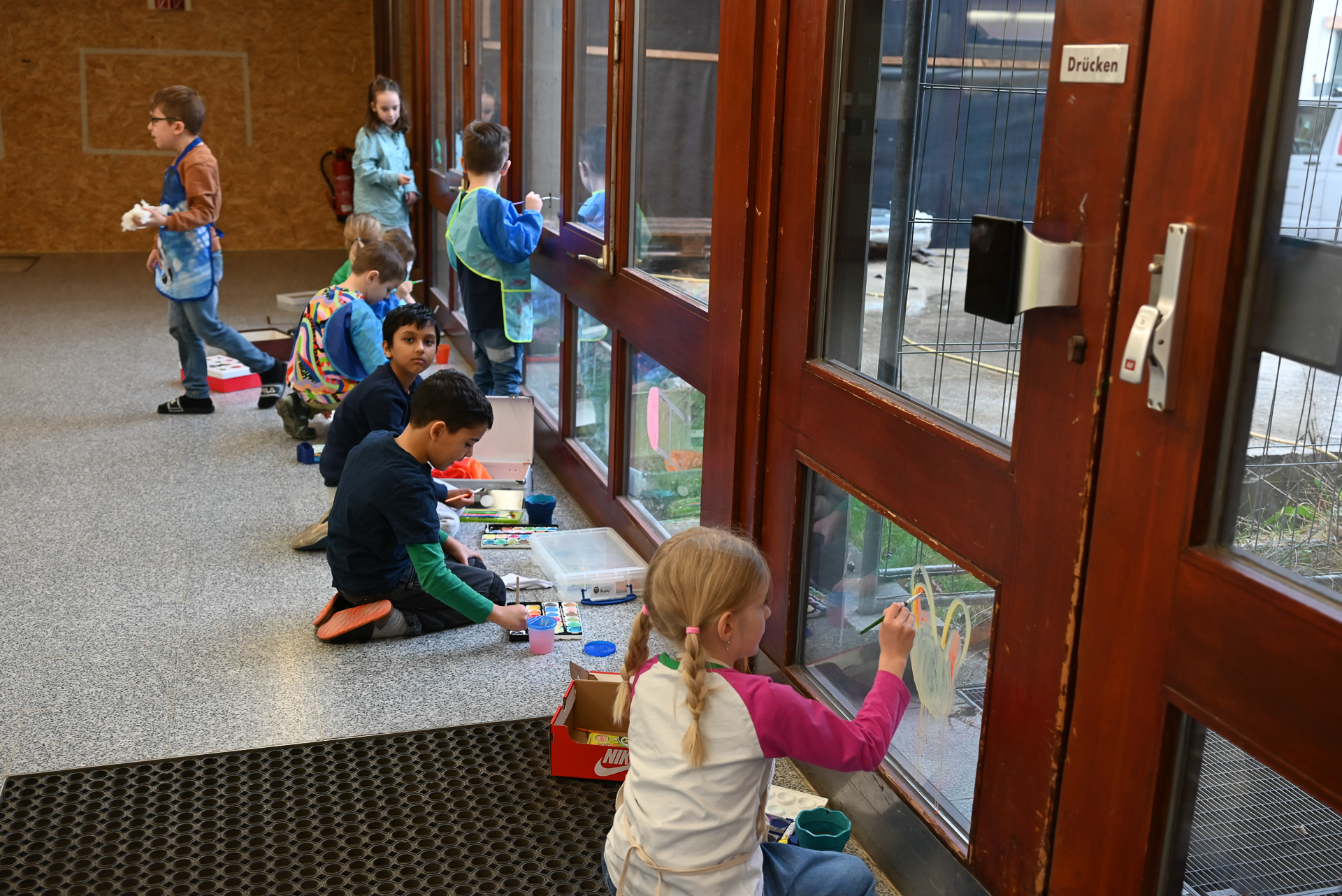 Schüler bemalen ihre Schule