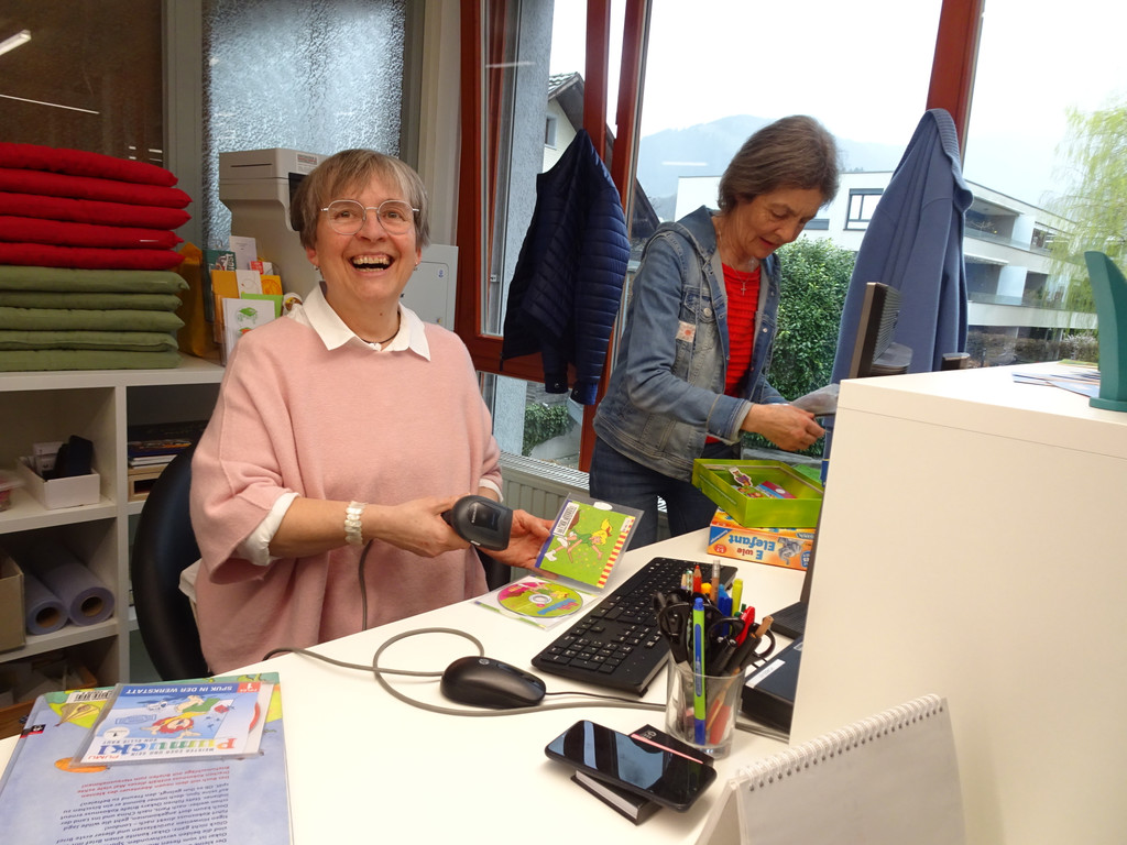 Ursula Feuertsein hatte alle Hände voll zu tun beim Registrieren der ausgeliehenen Bücher und Medien.