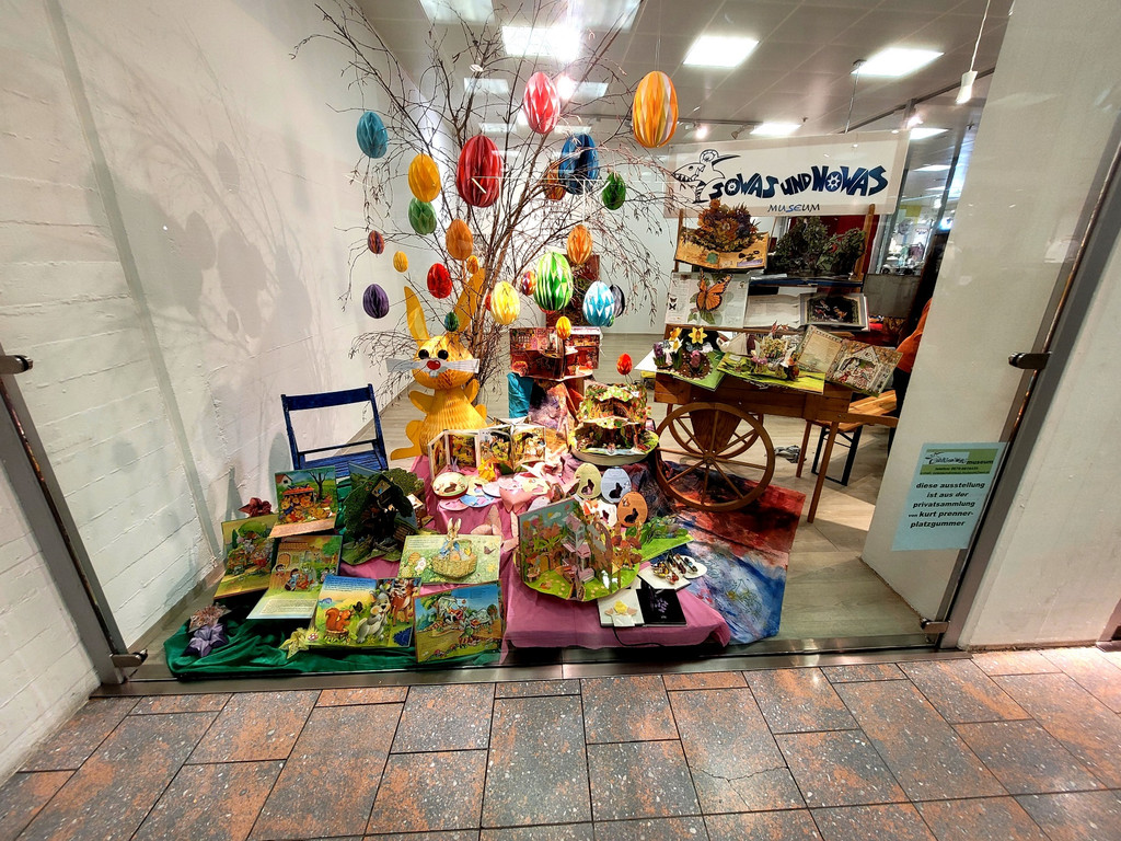 Das Lochauer Sammlerehepaar Prenner-Platzgummer vom SOWASundNOWAS-Museum präsentiert erstmalig in Vorarlberg über Ostern im GWL in Bregenz Pop up-Bücher, Origami-Bastelobjekte und Oster-PEZ-Spender der breiten Öffentlichkeit.