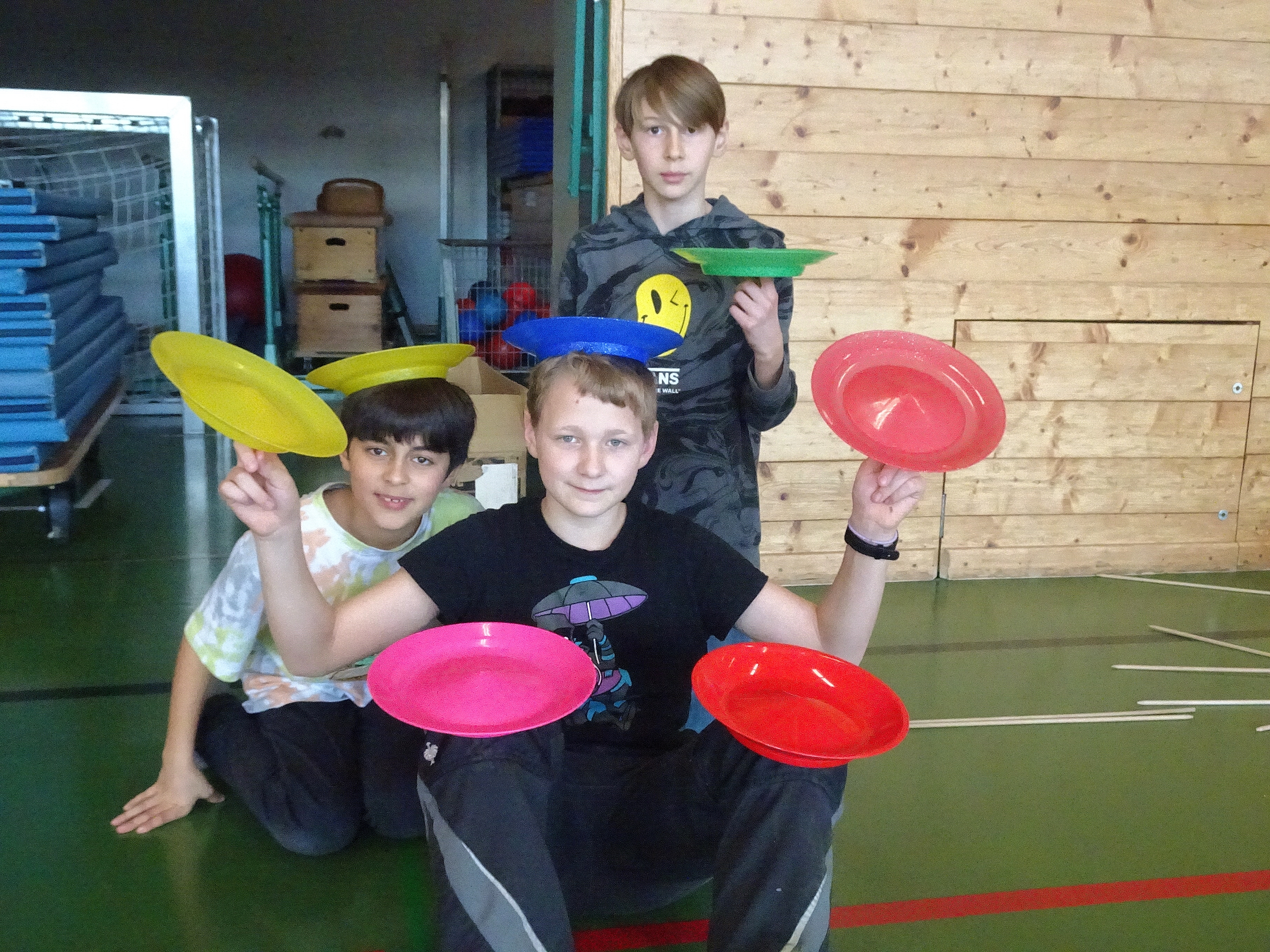 Die Erstklässler der MS Baumgarten kommen jede Woche in den Genuss des Jonglierens.
