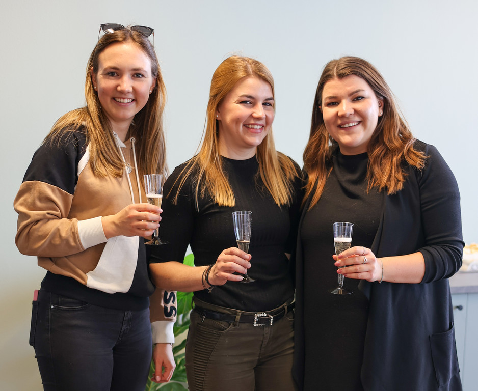 Luca, Mirjam und Sandra stießen auf die feierliche Eröffnung an.