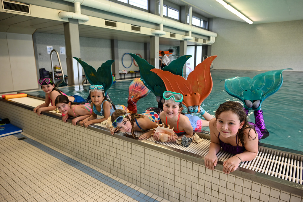 Stolz zeigten die Mädchen ihre Meerjungfrauenflosse.