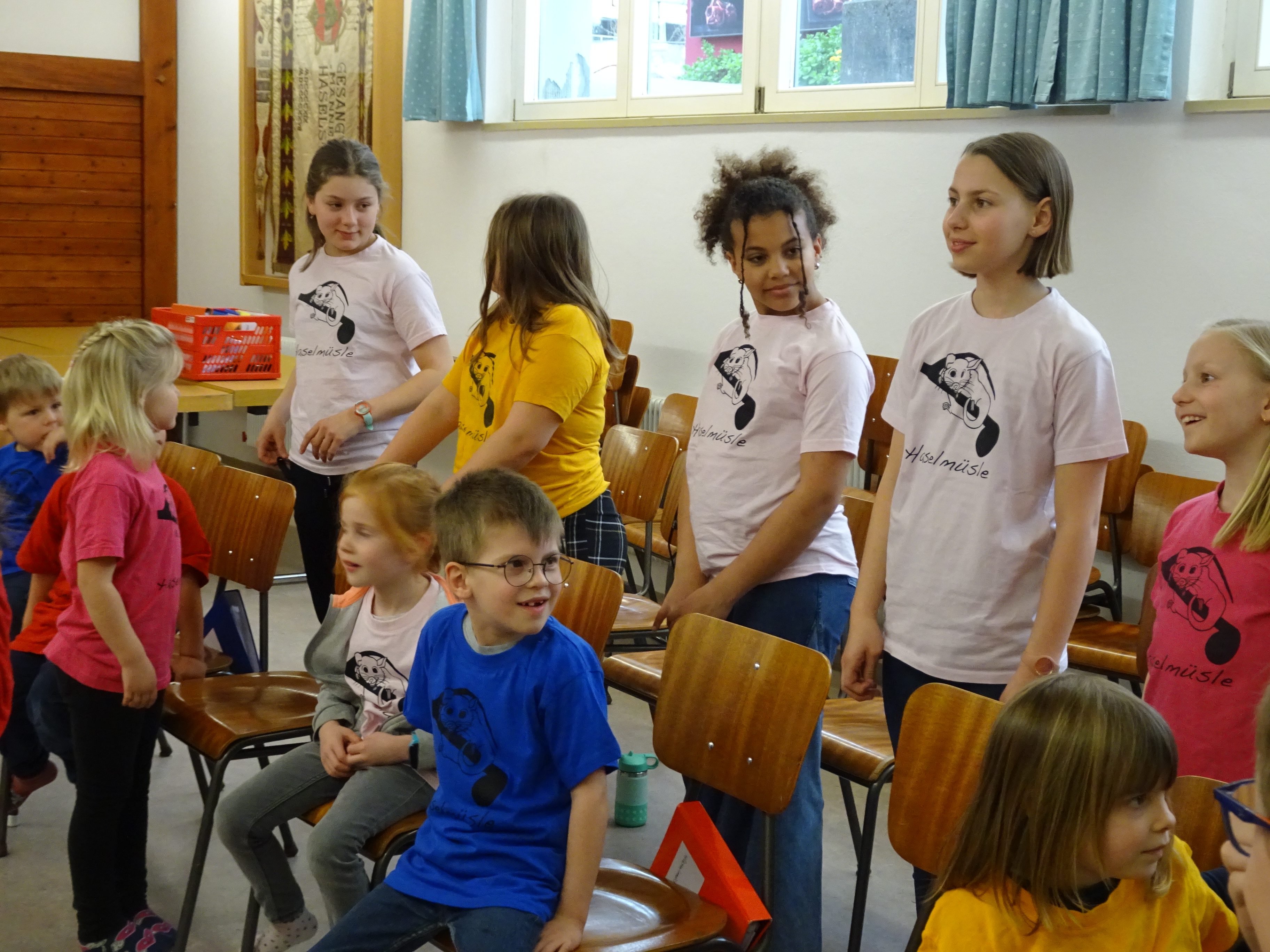 Die Kinder bereiten ihre Körper und die Stimmen auf das Singen vor.