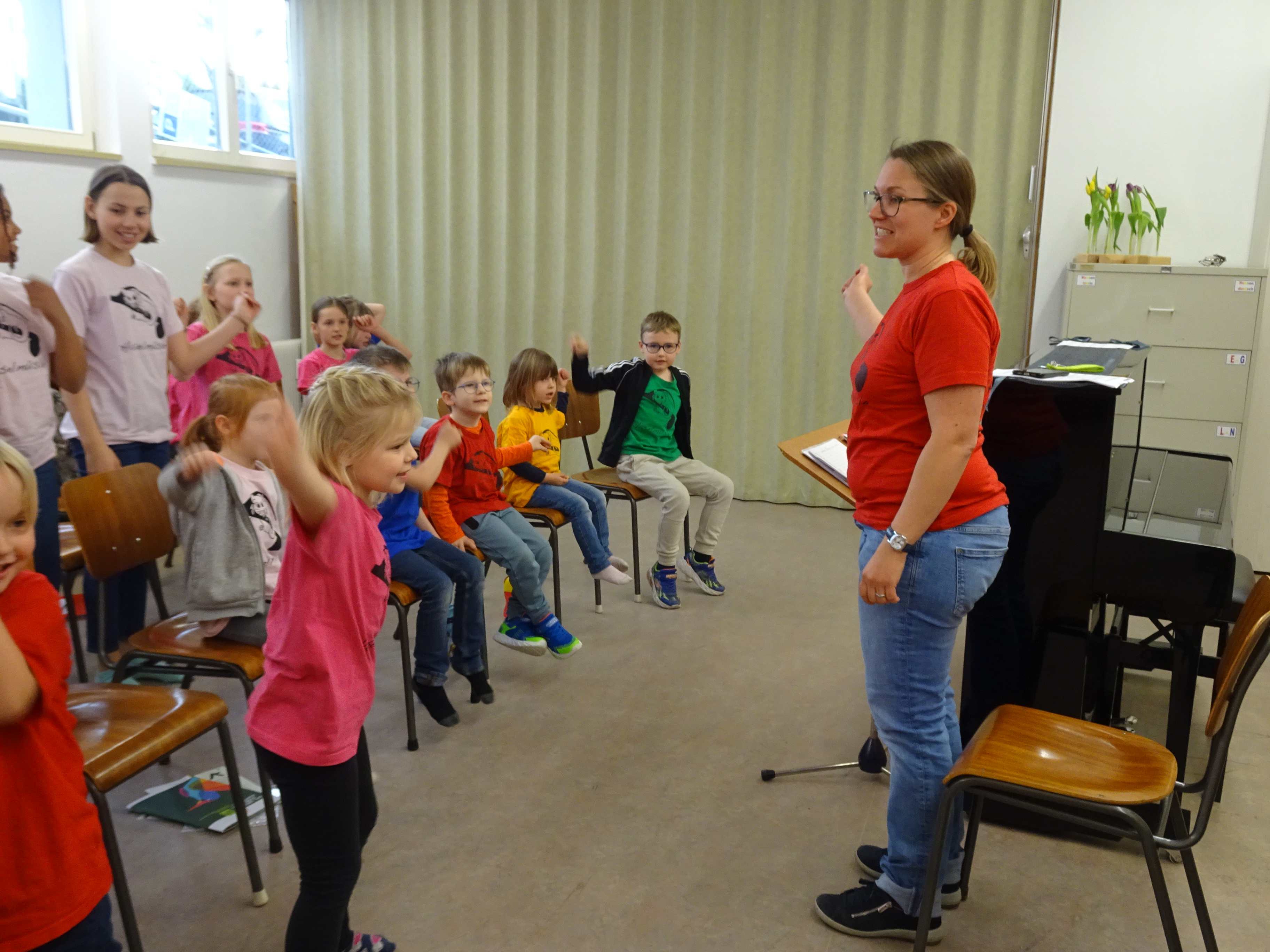 Beim Singen wird die Musik mit Bewegungen, Rhythmus-Patterns oder Instrumenten unterstützt.