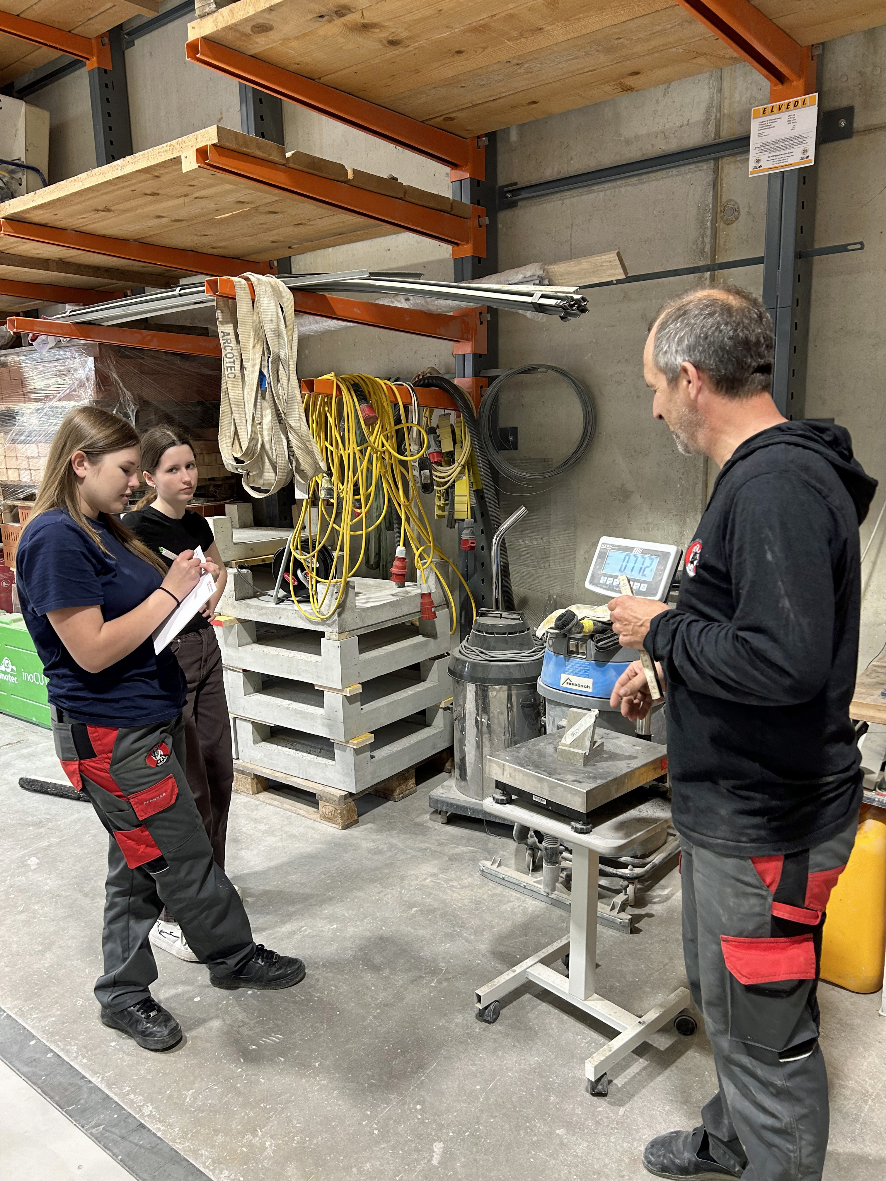 Der MAZ-Ausbildungsleiter unterstützte die Mädels bei den Betonberechnungen.
