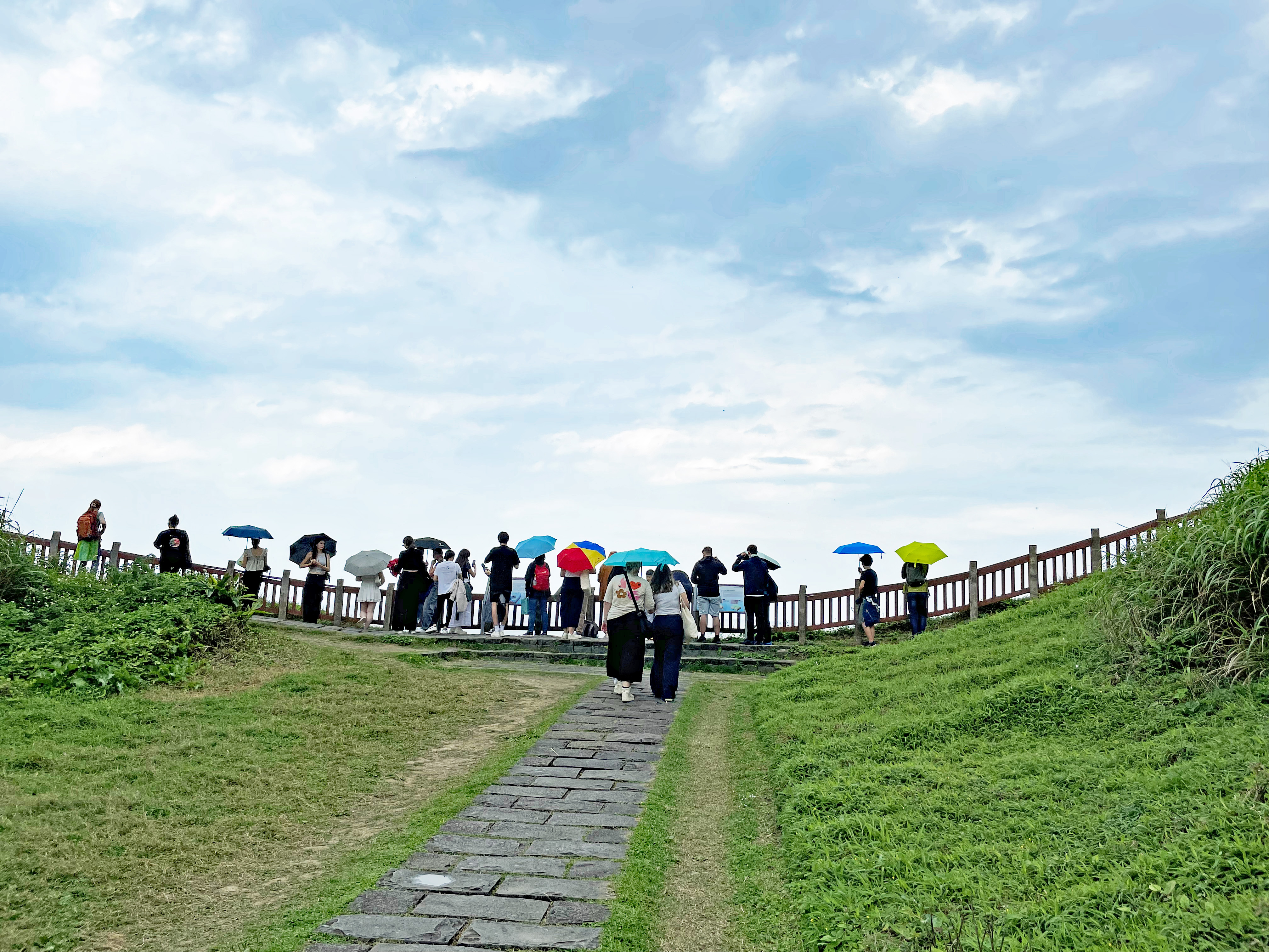 In Keelung wanderte die Gruppe einen Hügel hinauf und bewunderte die Aussicht auf den Pazifik.