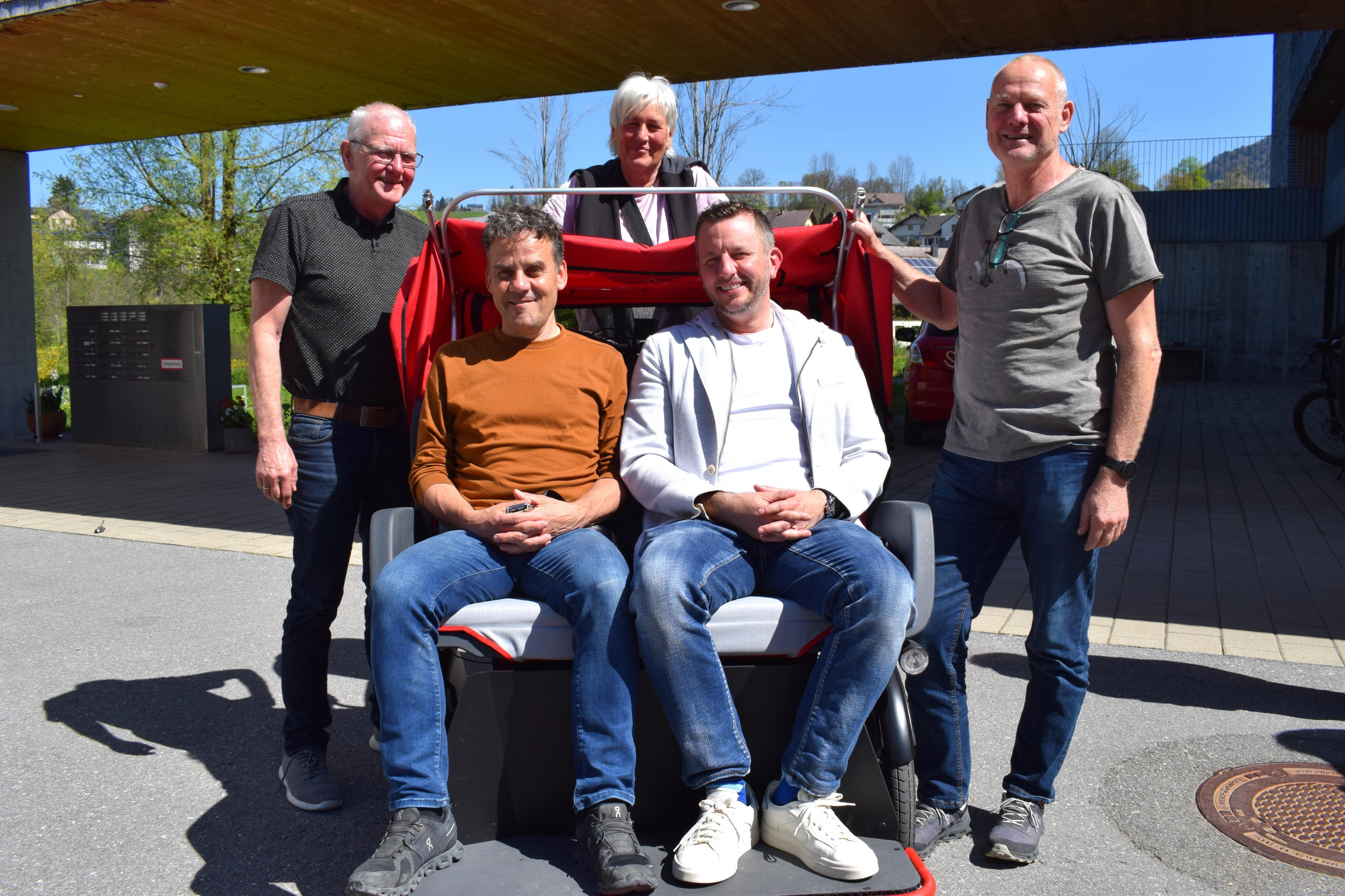 Probesitzen der Sponsoren Rupert Hammerer und Dr. Christian Holzer mit Erklärungen von Wilhelm Sutterlüty, Margot Lau und Sepp Wirthensohn.