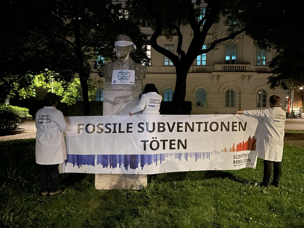 Nächtliche Verhüllungsaktion von Klima-Aktivisten in Wien