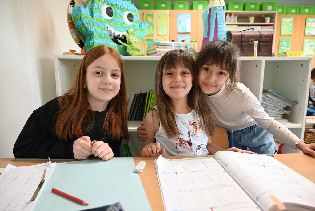 Erva, Asya und Melis fühlen sich in der Containerschule rundum wohl.