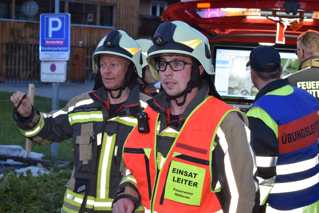 Im Übungseinsatz: Einsatzleiter Patrick Hiller unterstützt von Hans Grabher.