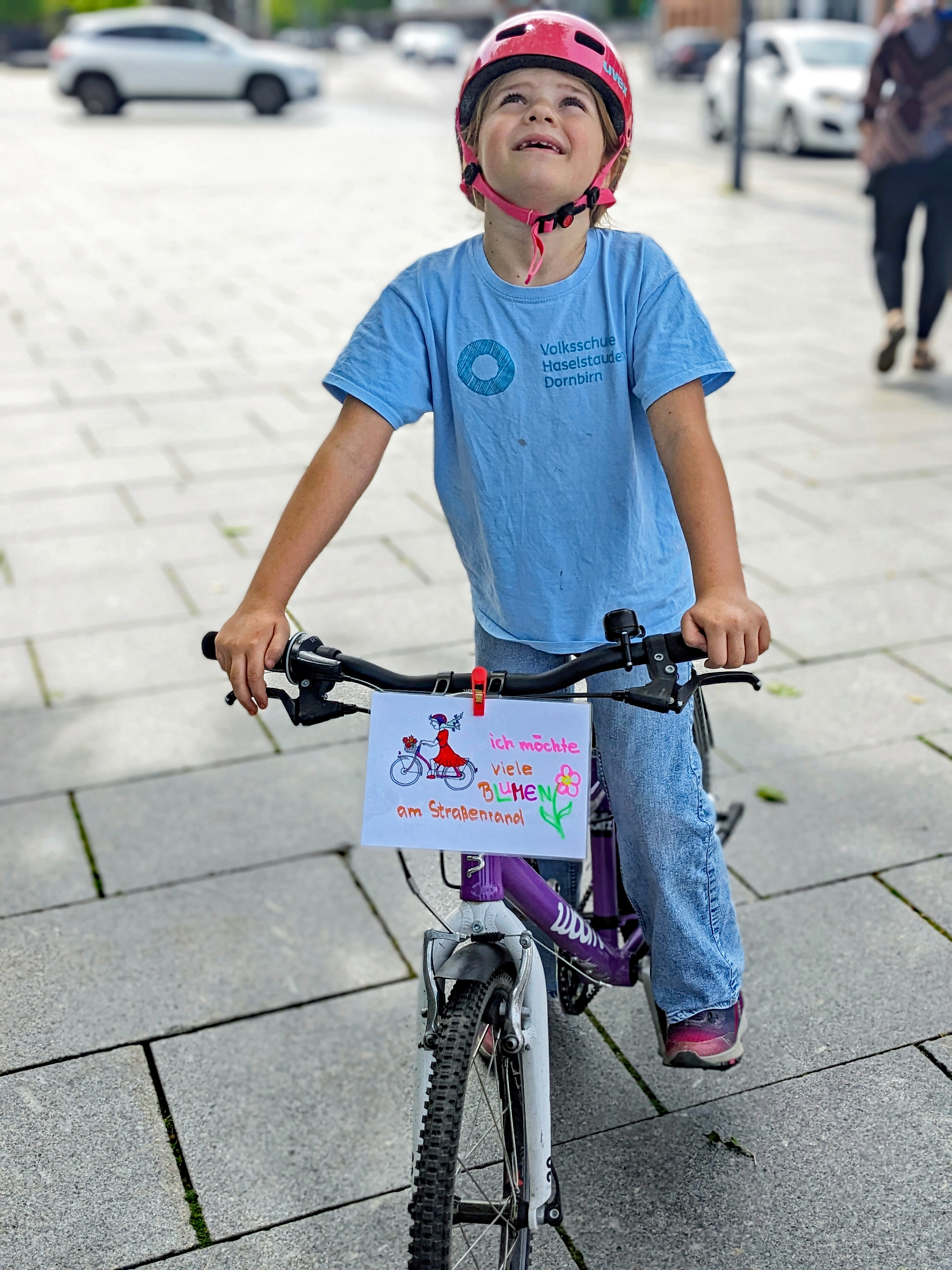 Dieses Kind wünscht sich mehr Blumen am Straßenrand.