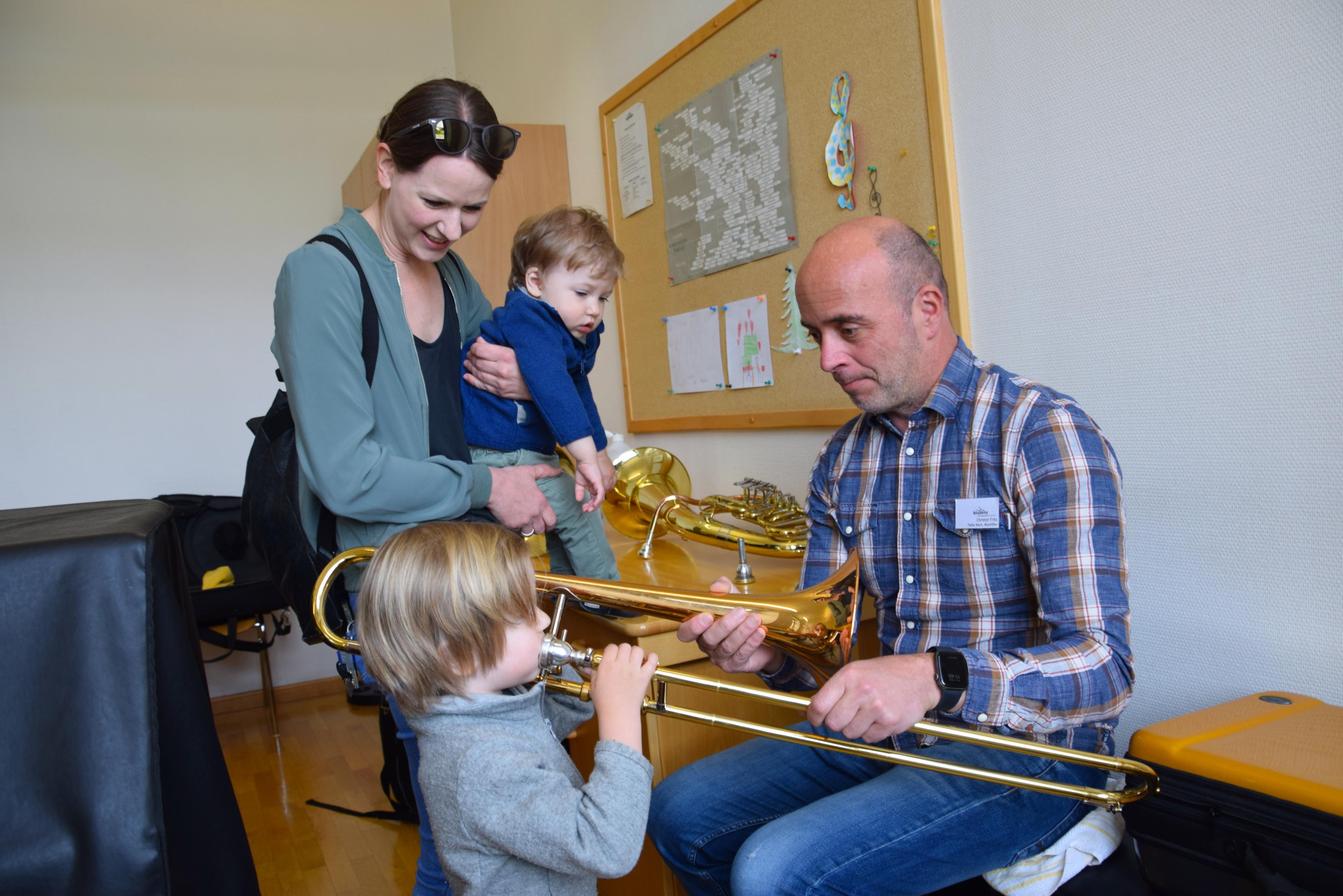 Bjarne, 3 Jahre, bei Musikschullehrer Christof Fritz.