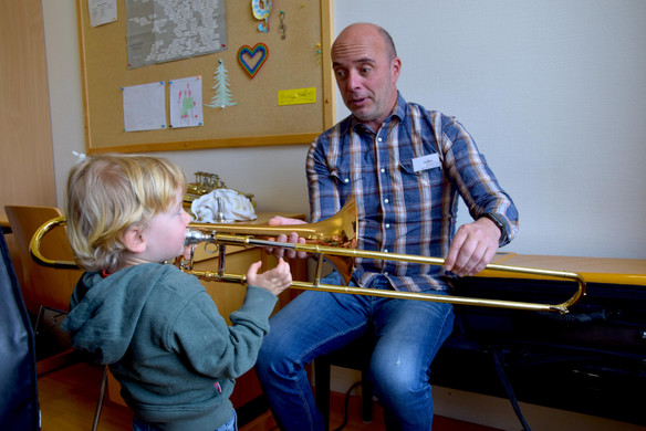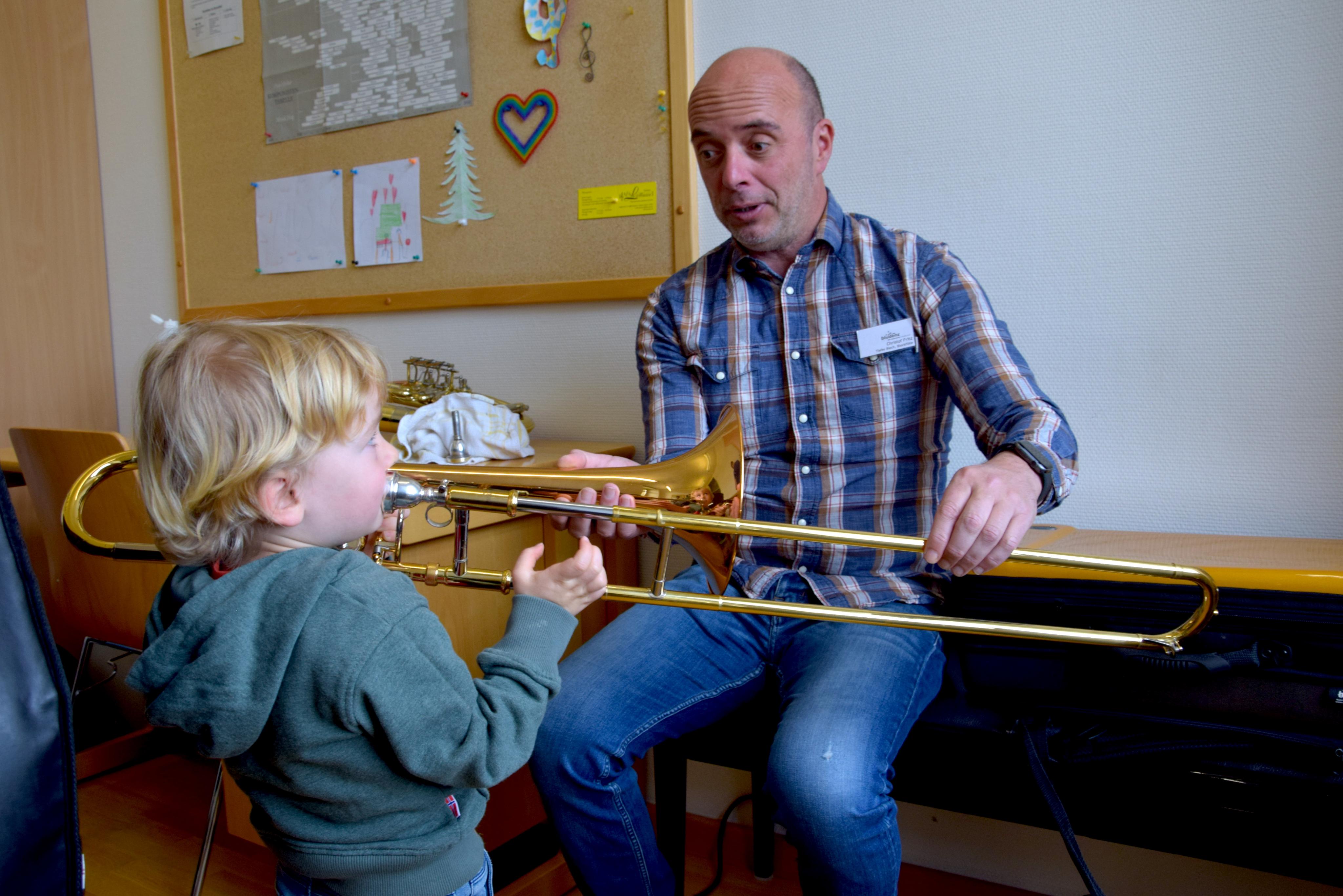 Bjarne, 3 Jahre, bei Musikschullehrer Christof Fritz.