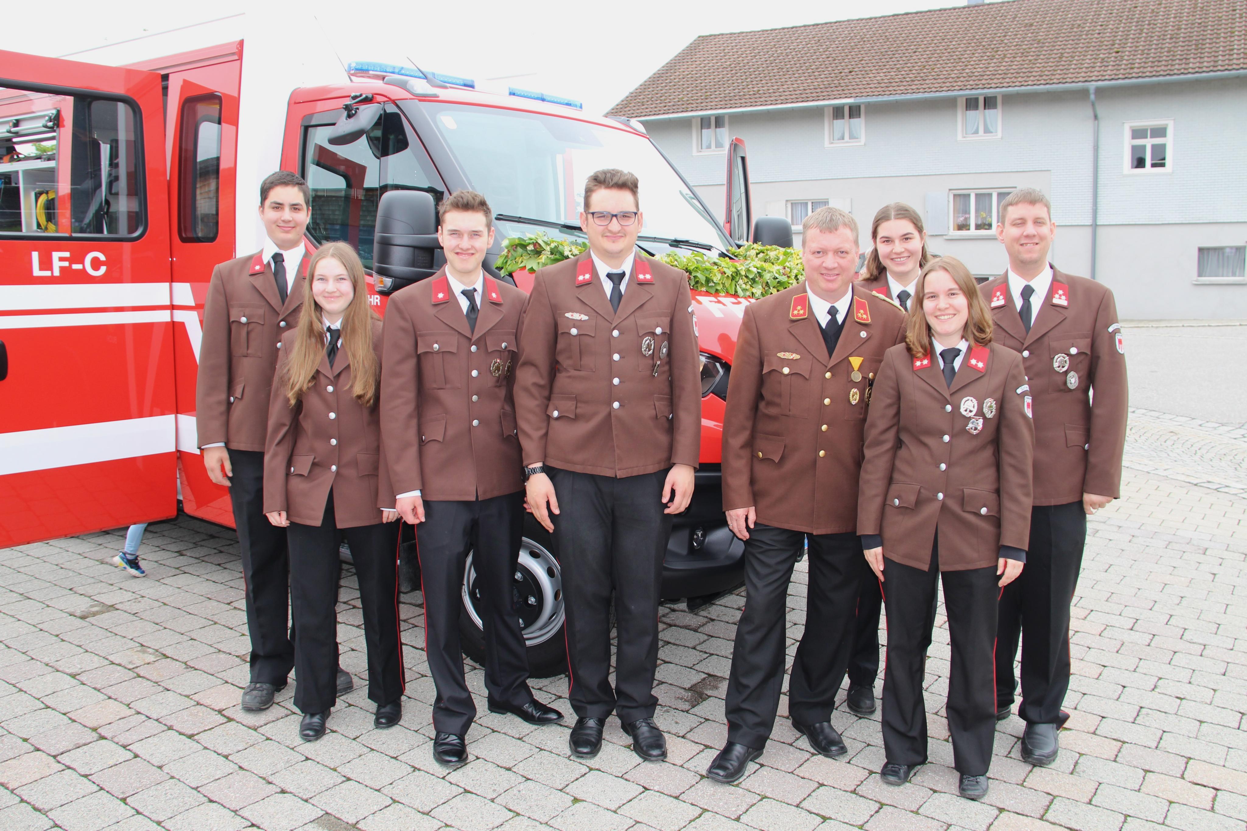 Die Abordnung der Feuerwehr Schwarzach überzeugte sich vom neuen Einsatzfahrzeug der Bucher Wehr