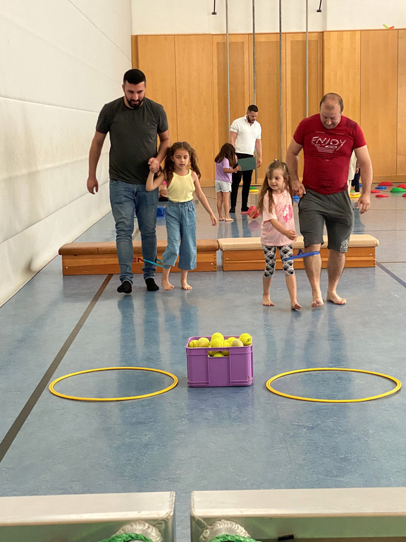 An drei Bewegungsstationen meisterten die Väter mit ihren Kindern die Aufgaben.