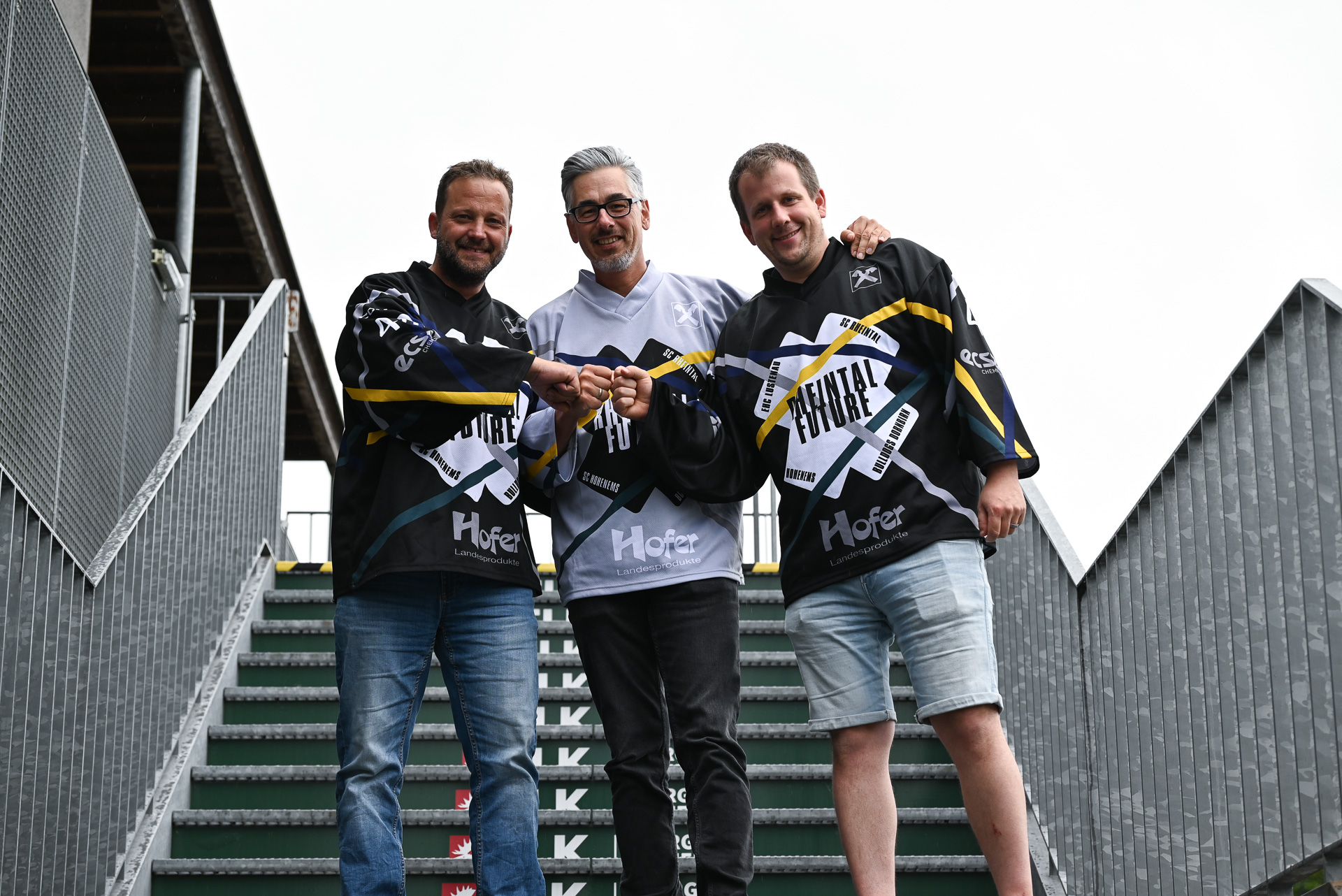 Nutzen ihre Kräfte für den Eishockey-Nachwuchs: Christof Schwendinger (EC Dornbirn), Ralph Kessler (EHC Lustenau), Fabian von Allmen (SC Rheintal) mit Hard un Hohenems.