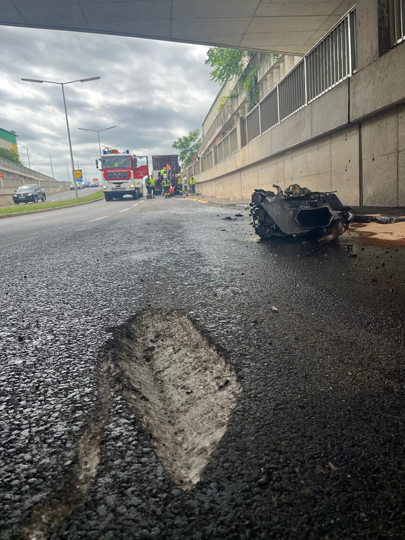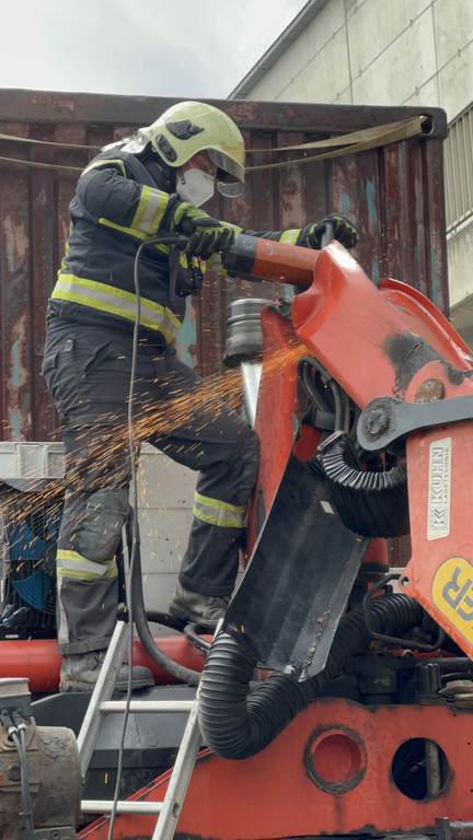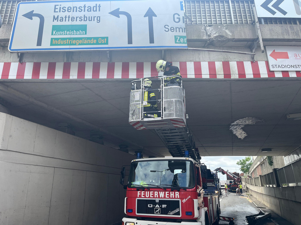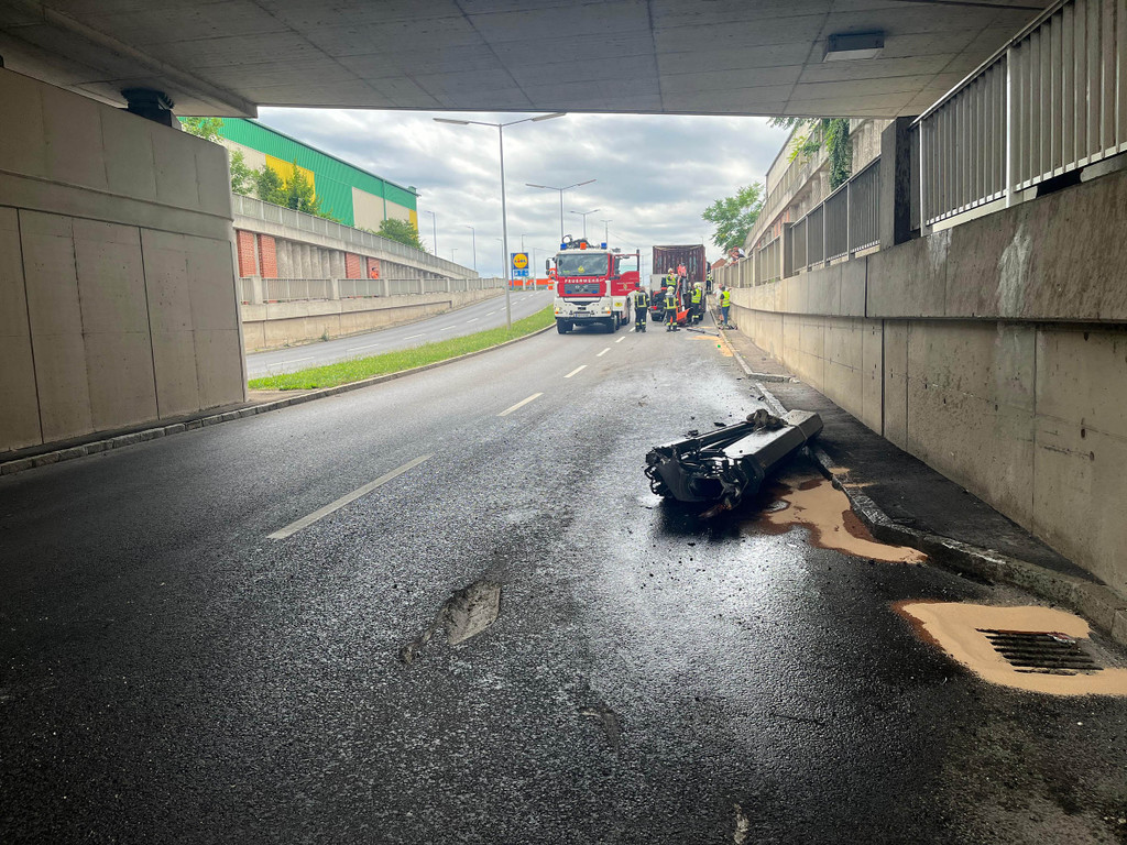 Ladekran knickte an Unterführung ab