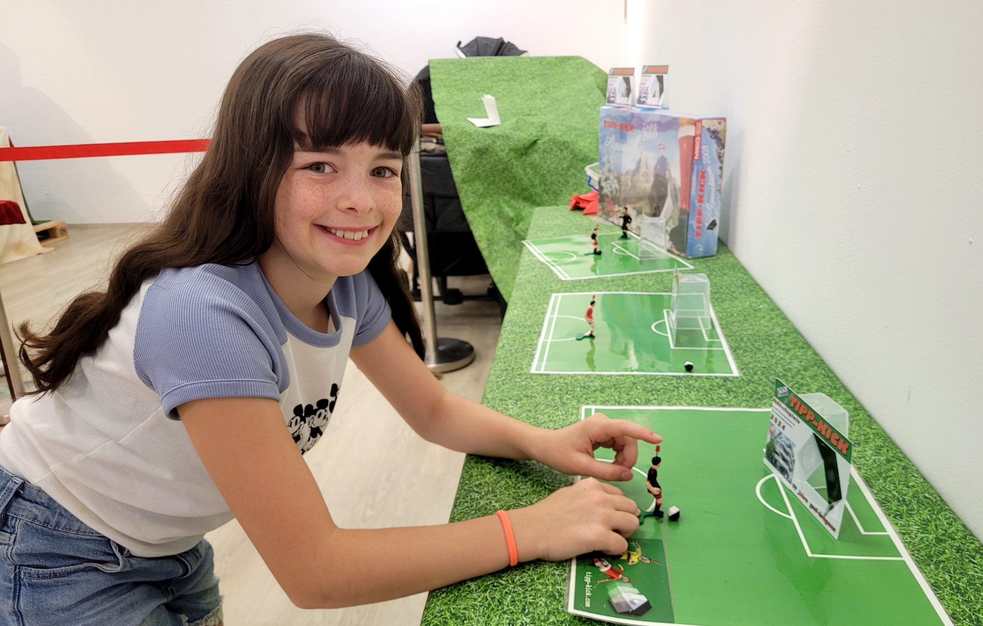 Übung macht den Meister: Viel Spaß haben die Kinder beim Torwandschießen im Rahmen der Tipp-Kick-Fußballspiele-Ausstellung im GWL in Bregenz.