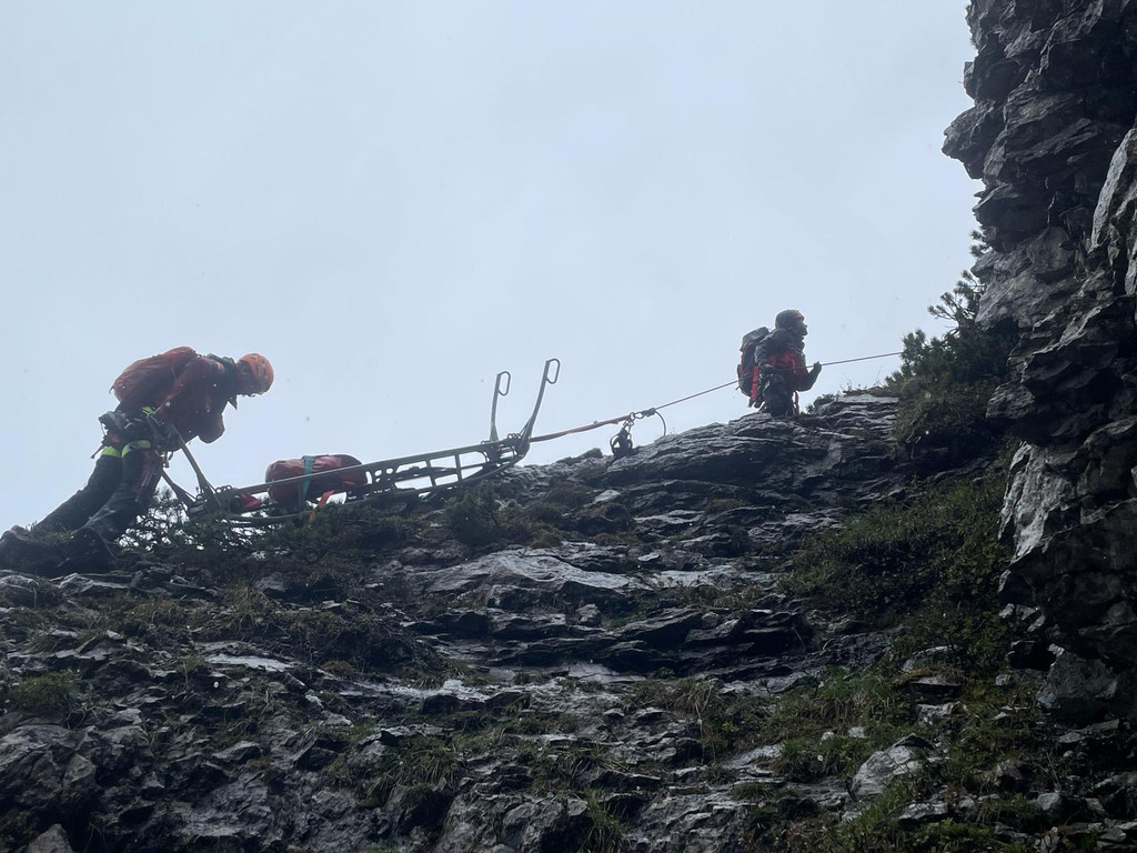 Auch der Aufstieg mit der Gebirgstrage war eine Prüfung an die Bergrettungsmannschaft.