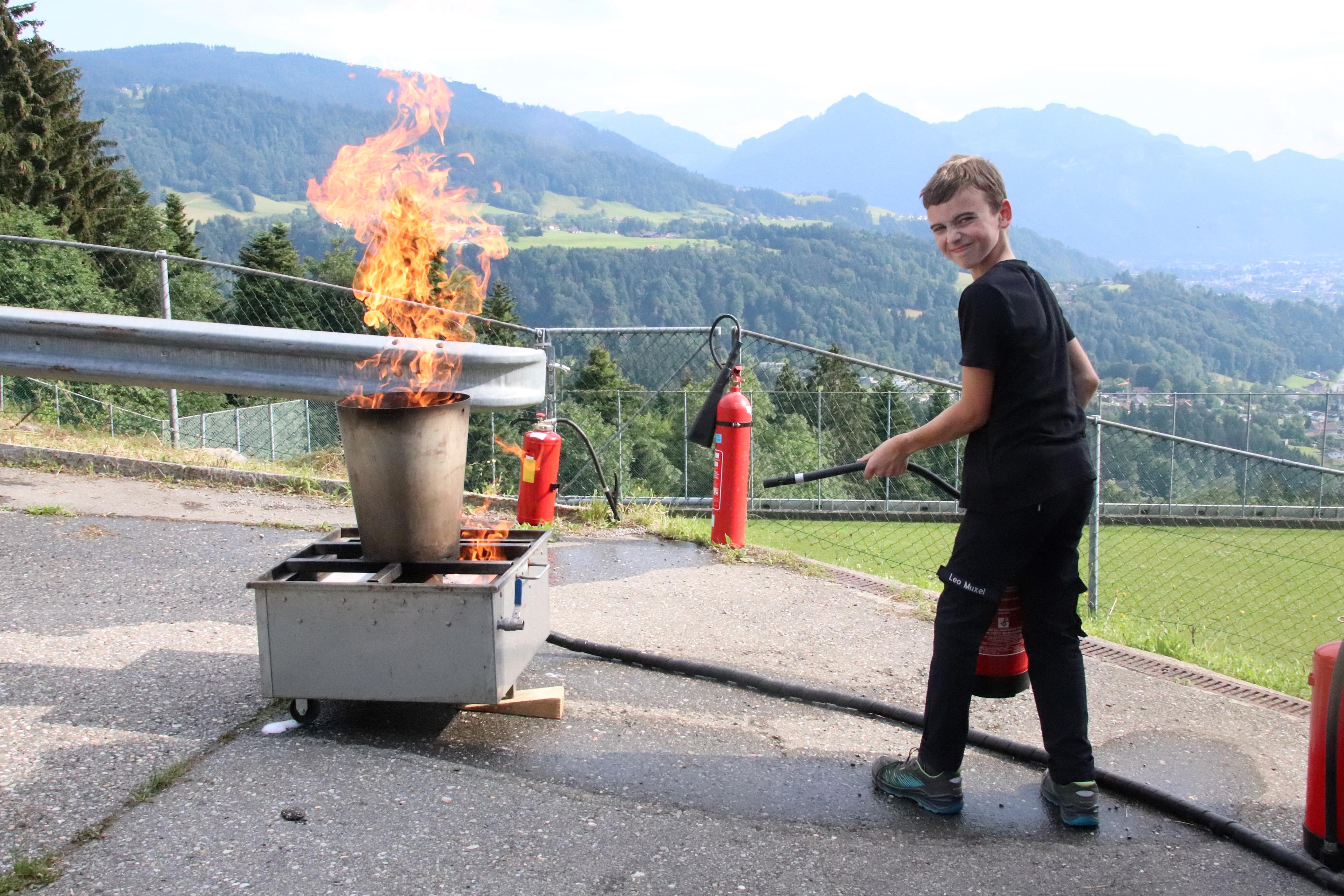 Leo zeigte die richtige Handhabung eines Feuerlöschers.