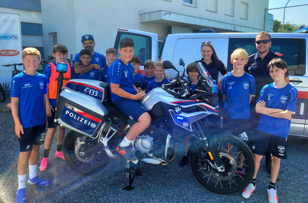 Ein besonderes Highlight war neben dem Fußballspielen der große Blaulichttag mit der Feuerwehr Lochau, dem Roten Kreuz Bregenz und der Polizei Lochau.