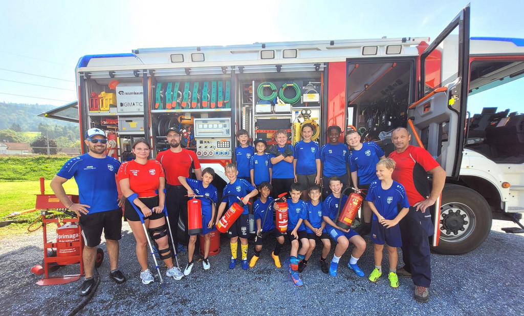Ein besonderes Highlight war neben dem Fußballspielen der große Blaulichttag mit der Feuerwehr Lochau, dem Roten Kreuz Bregenz und der Polizei Lochau.