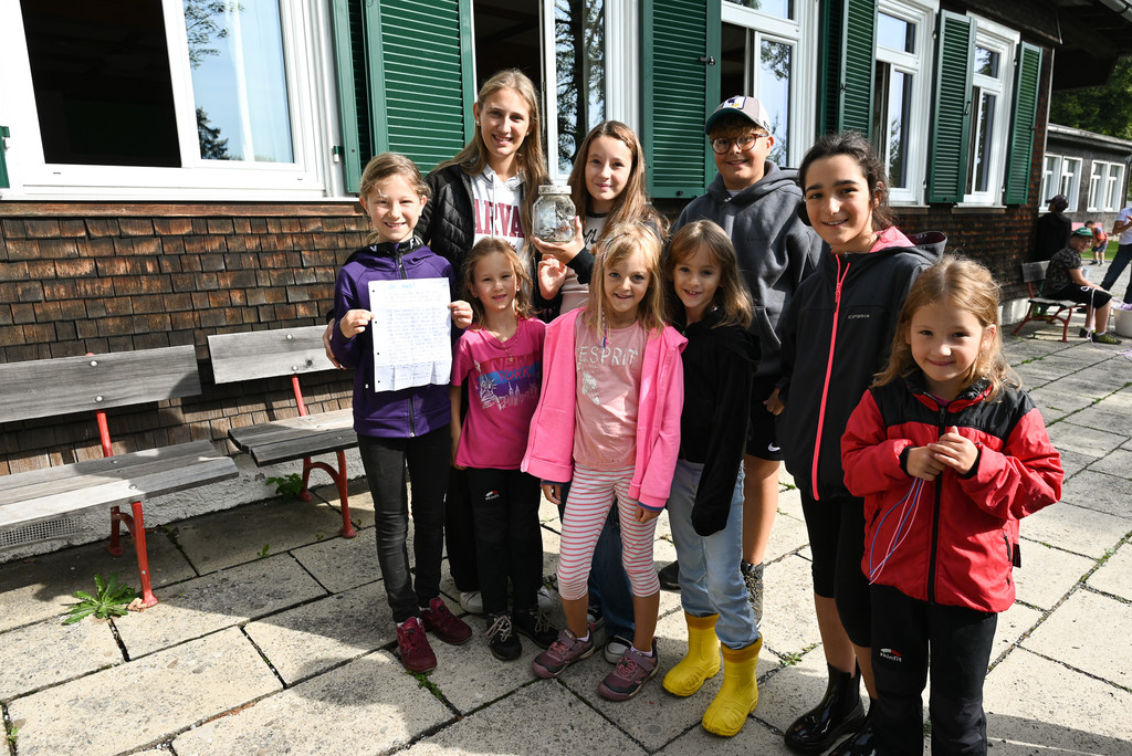Stolz zeigt eine Gruppe Kinder einen Schatz, der vor drei Jahren vergraben und nun von ihnen entdeckt wurde.