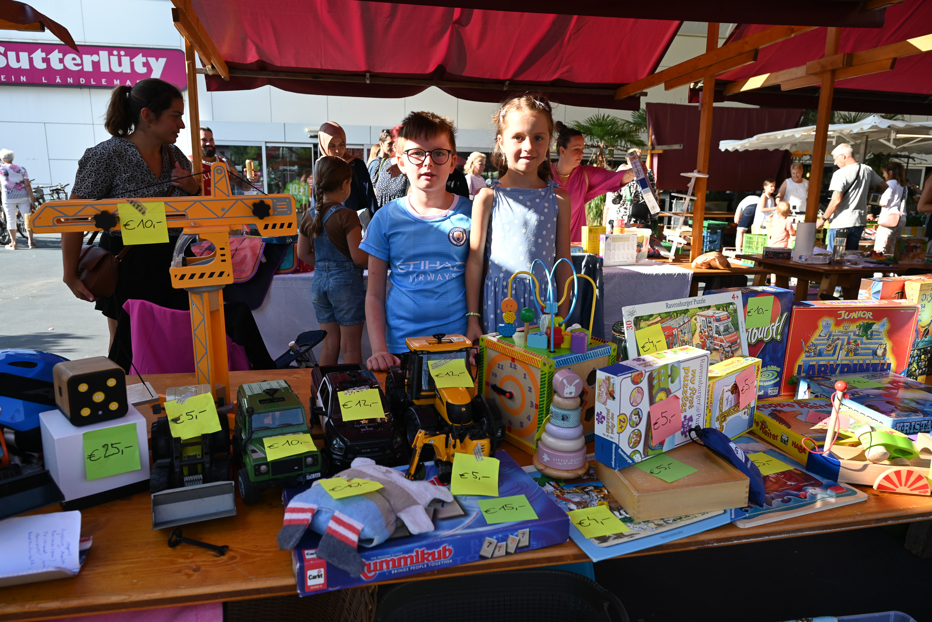 Jonathan (9) und Magdalena (6) trennten sich von ein paar ihrer Spielsachen und verkauften sie beim Flohmarkt.