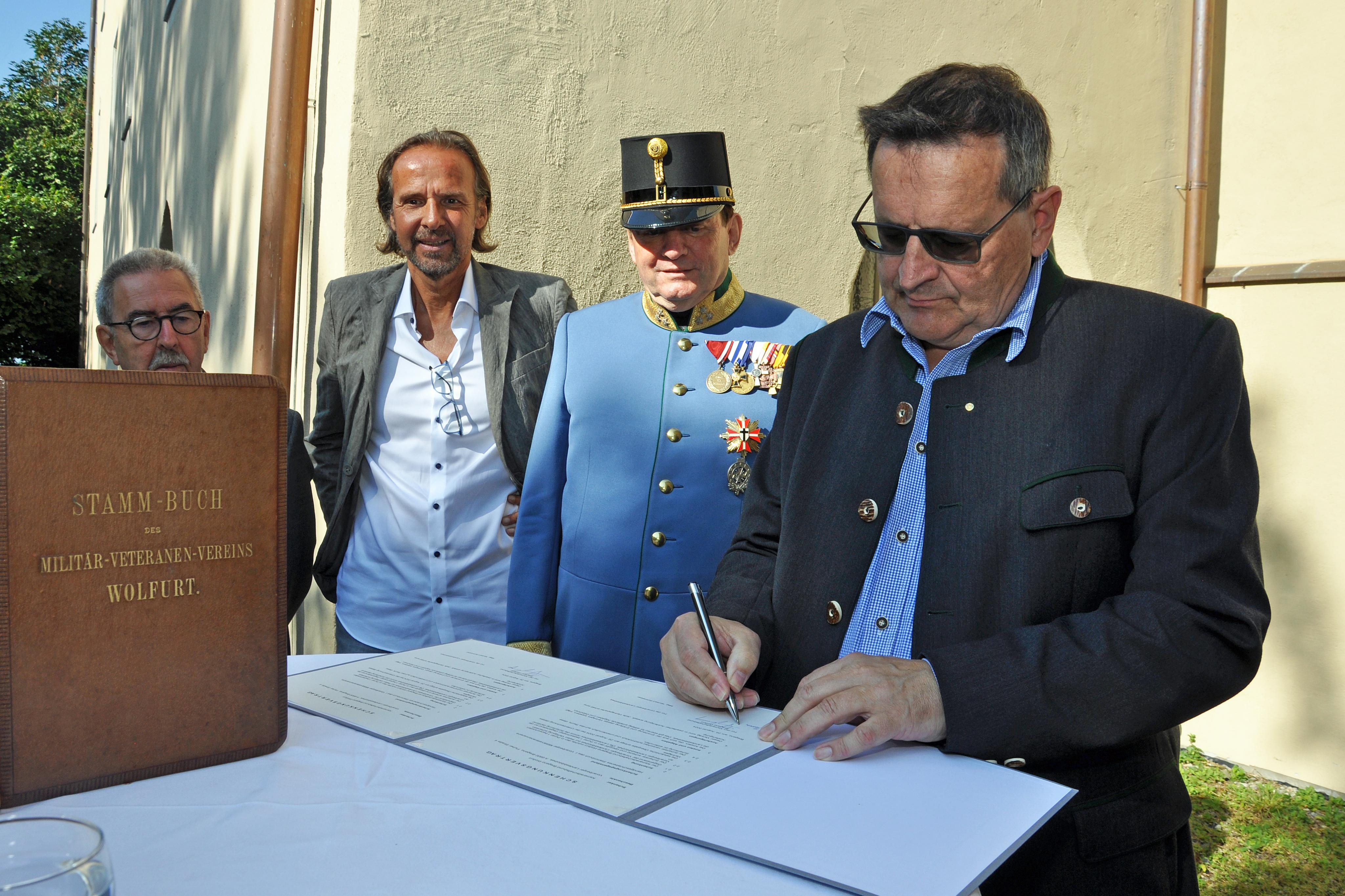 Thomas Kinz, Obmann des Kameradschaftsbunds Bregenz-Wolfurt unterzeichnet den Schenkungsvertrag.