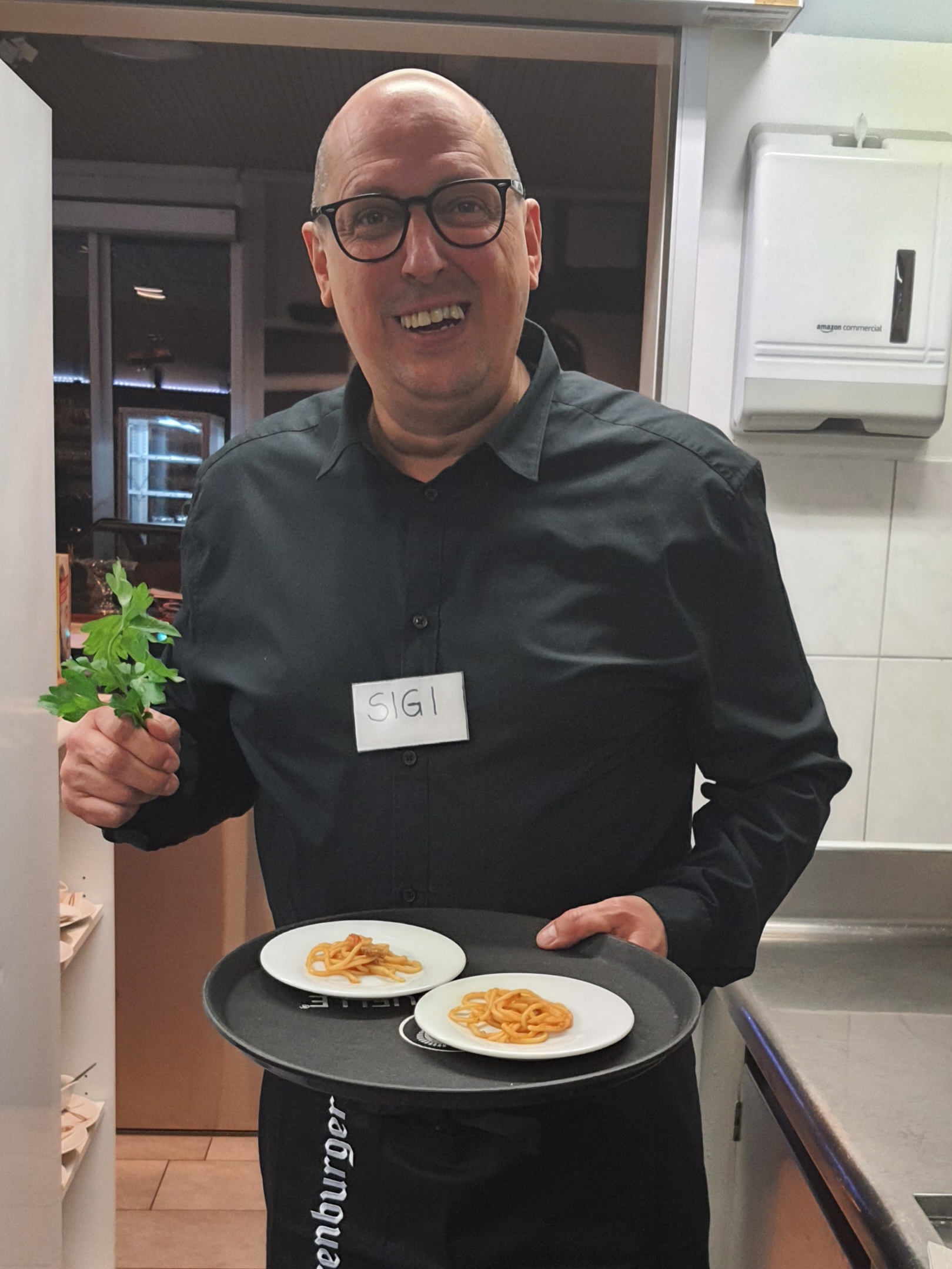 Didi Eisenhofer schlüpft gerne auch mal in die Rolle des falschen Kellners und macht Scherze mit den Gästen.
