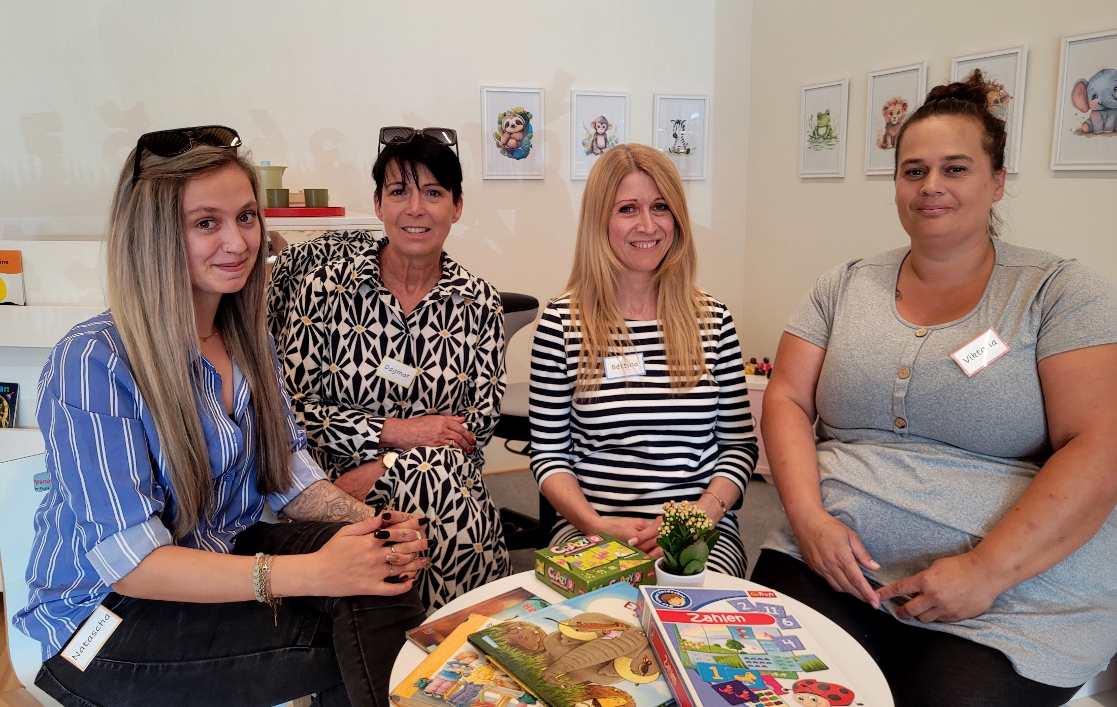 Natascha Praml, Dagmar Schneider, KinderHaus-Bäumle-Leiterin Bettina Franner und Viktoria Sonnleitner als Leiterinnen der fünf Kinderbetreuungsgruppen. Es fehlt Regina Englisch.