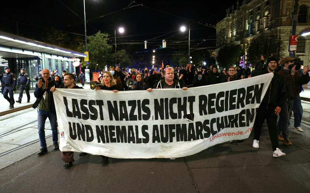 Demonstration gegen FPÖ vor Parlament in Wien