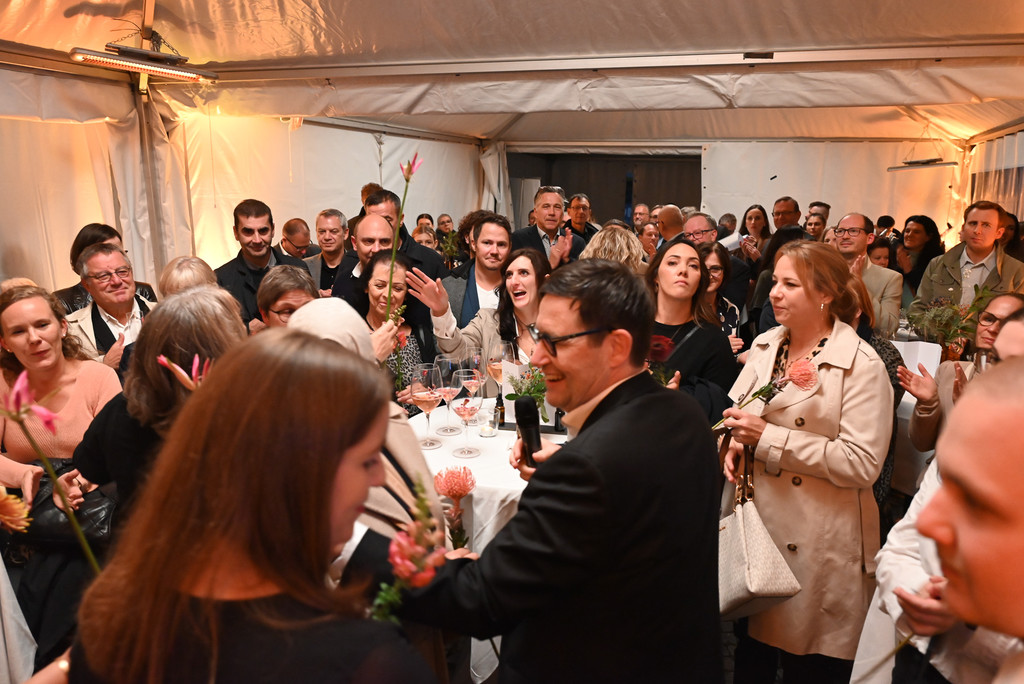 Das Festzelt vor der Apotheke war voll. Viele Gäste feierten mit der Apothekerfamilie das Jubiläum.