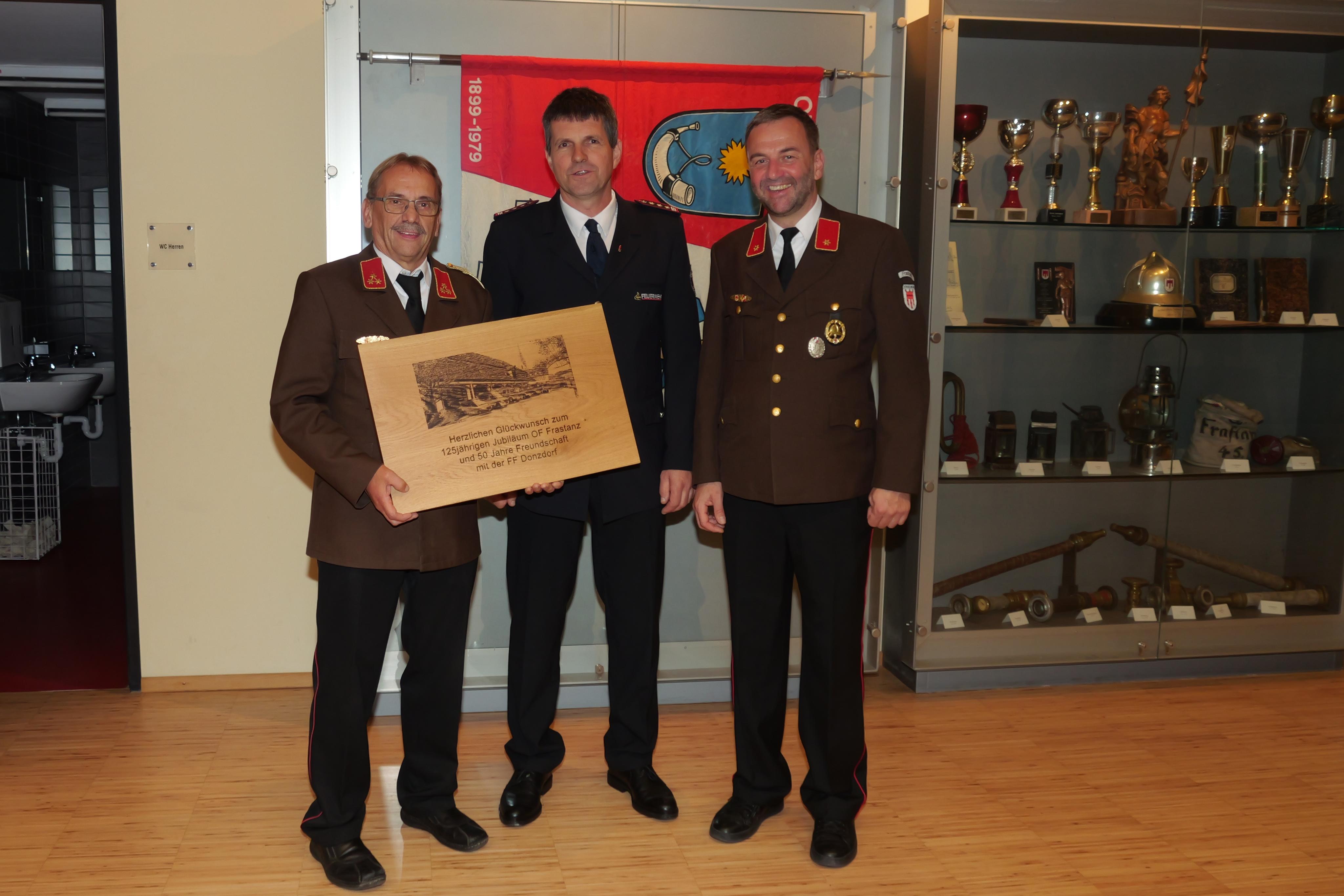 Feuerwehr Frastanz Kommandant Martin Schmid mit Feuerwehr Donzdorf Kommandant Oliver Schmid und Klaus Malin.