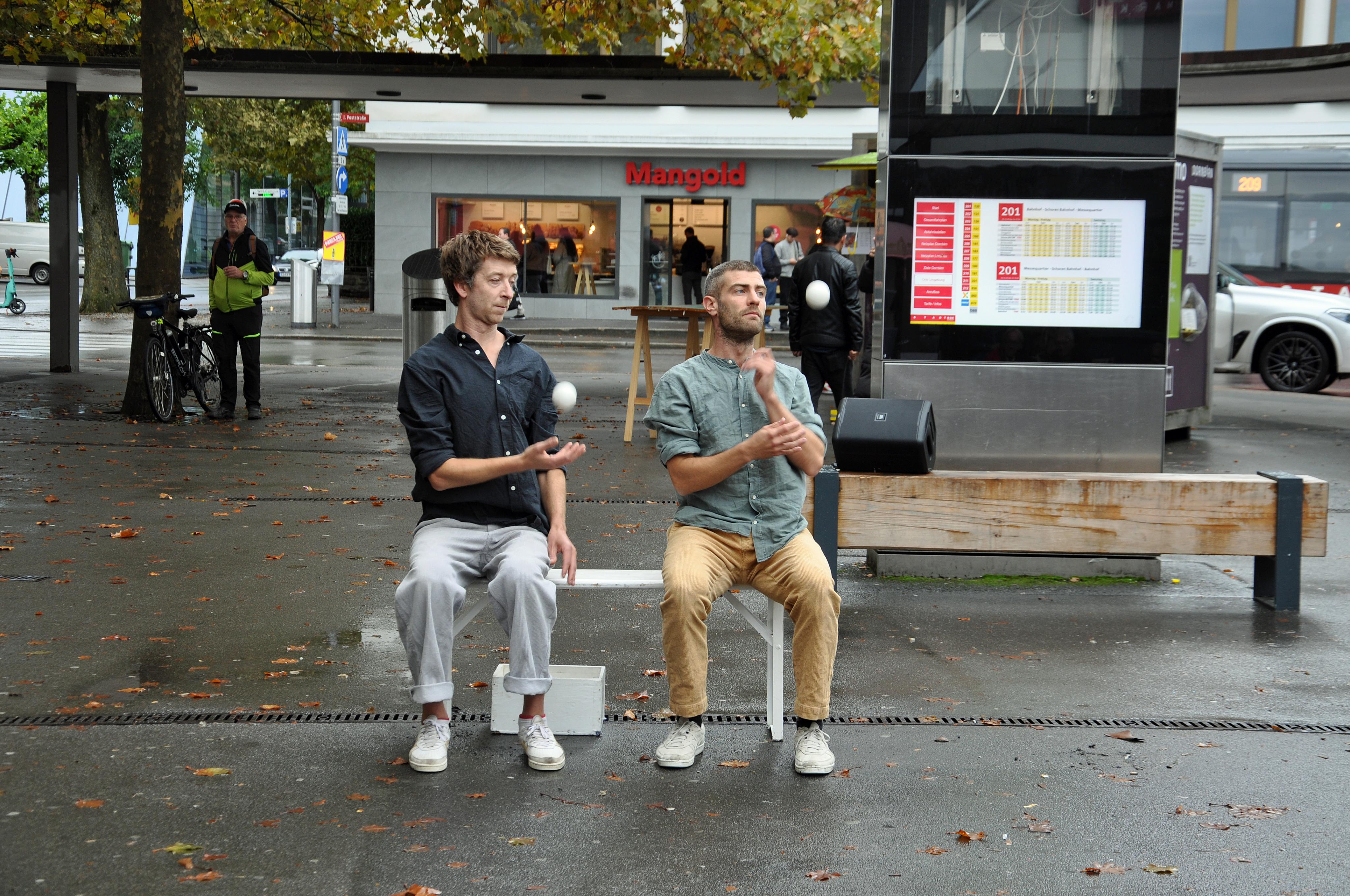 Die Zirkuskompanie Hippana.Maleta nutzt Jonglage und Objektmanipulation als Ausdrucksform.