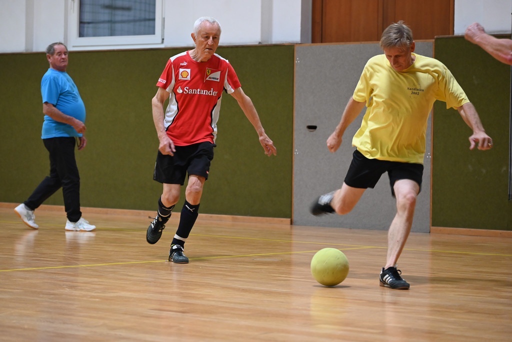 Mit vollem Einsatz sind die Männer beim Spiel dabei.