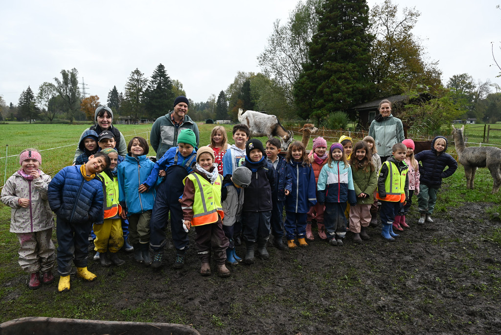 Die Kinder der Bauernhofklasse erleben einen etwas anderen Schulalltag mit ihren beiden Lehrerinnen Nina Schlattinger und Margot Berchtold-Galehr. Direktor Robin Würtinger kam auch zu Besuch auf den Alpaka-Hof.