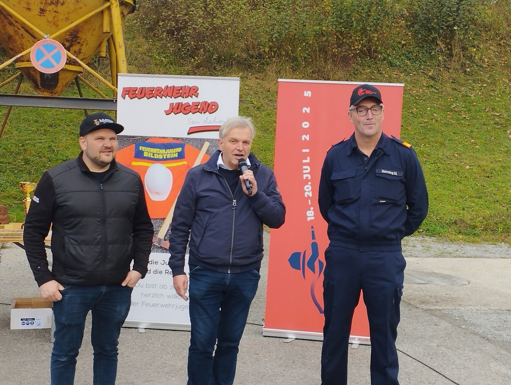 Michael und Helmut Lenz (MVB) und Feuerwehrkommandant Markus Nenning eröffneten den traditionell den Herbstmarkt.