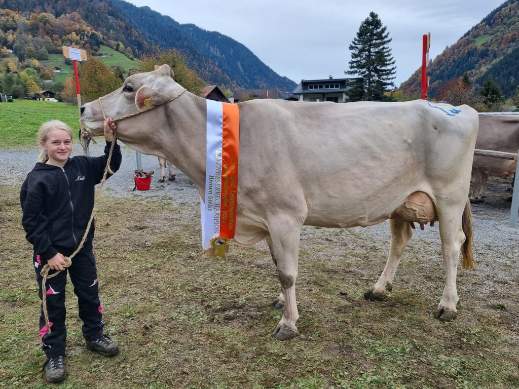 Brown-Swiss-Kühe bei Viehausstellung Innermontafon.
