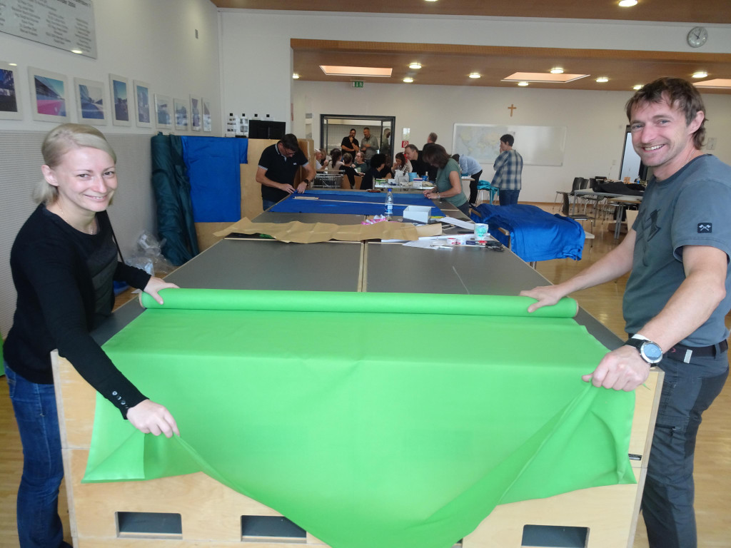 Sabrina und Markus Spiegel halfen fleißig beim Stoffschneiden mit.