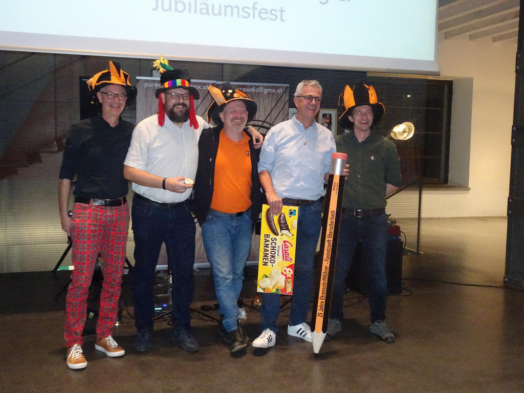 Zu einem Jubiläum gehören natürlich auch Ehrungen - hier, Wolfgang Rusch (2. v.re.) der als langjähriger Schriftführer geehrt und verabschiedet wurde.