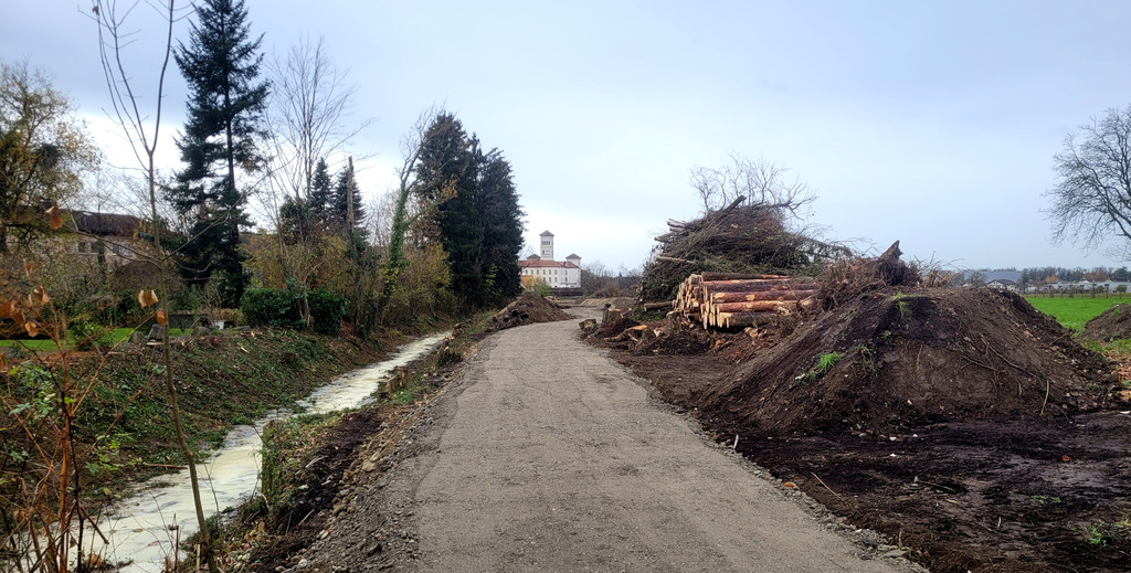 Der idyllische Fuß- und Radweg wurde durch eine baubegleitende Baustraße ersetzt.