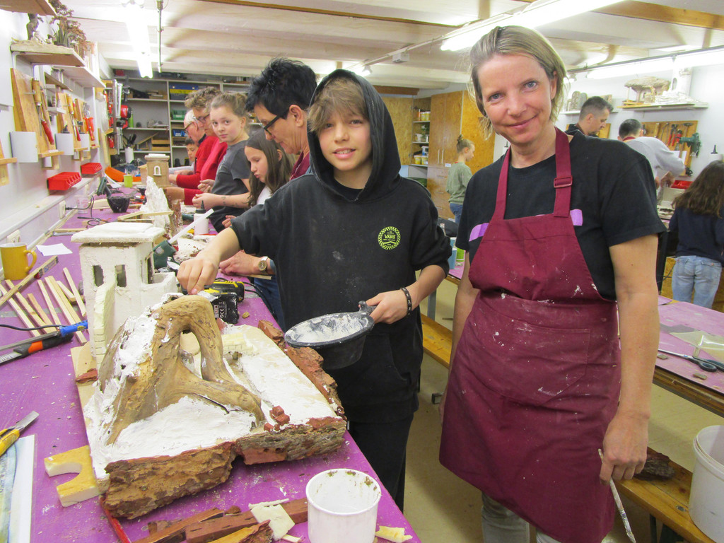 Gerda Schnetzer Sutterlüty mit Sohn bauten eine Krippe